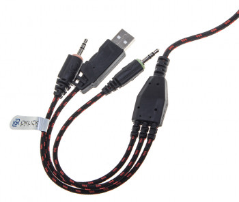 компьютерная гарнитура, игровая; с полноразмерными наушниками закрытого типа; крепление при помощи оголовья; встроенный регулятор громкости; подключение: USB / 2 x mini jack 3.5 mm; частота воспроизведения 20-20000 Гц