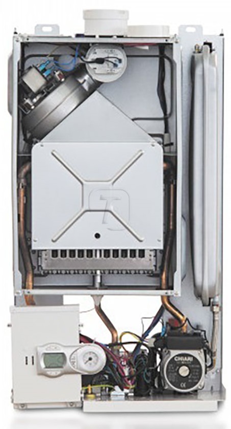 тип отопительного котла: газовый; количество контуров: двухконтурный; макс. тепловая мощность 24 кВт; отапливаемая площадь 240 м²; размещение: настенный; напряжение сети: однофазное; управление: электронное; встроенный циркуляционный насос; встроенный расширительный бак