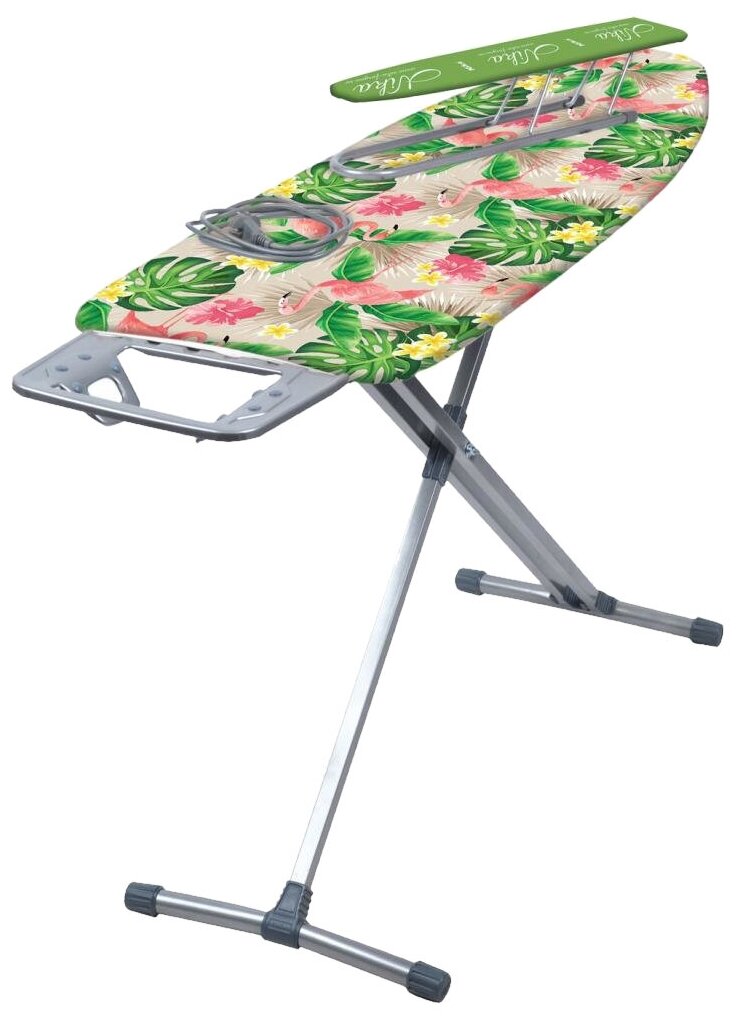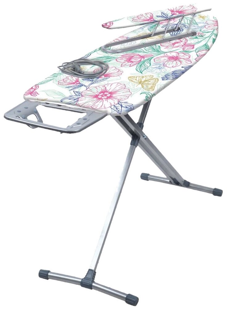 комплектация: подставка для утюга, гладильный рукав, встроенная розетка для утюга; особенности: регулировка высоты, противоскользящие насадки; вес: 7.21 кг
