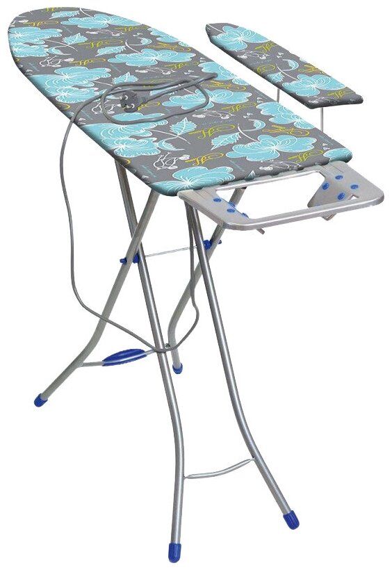 комплектация: подставка для утюга, гладильный рукав, встроенная розетка для утюга; особенности: регулировка высоты, чехол с антипригарным покрытием, съемный чехол, противоскользящие насадки; вес: 5.54 кг