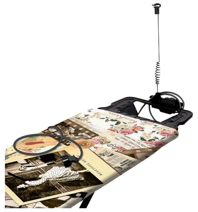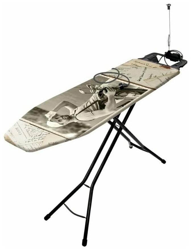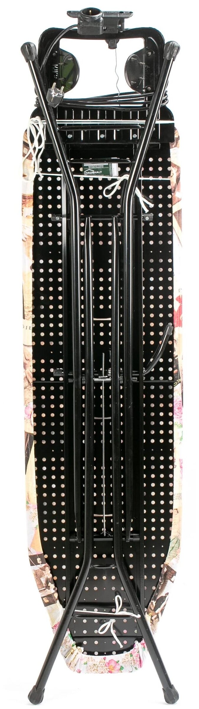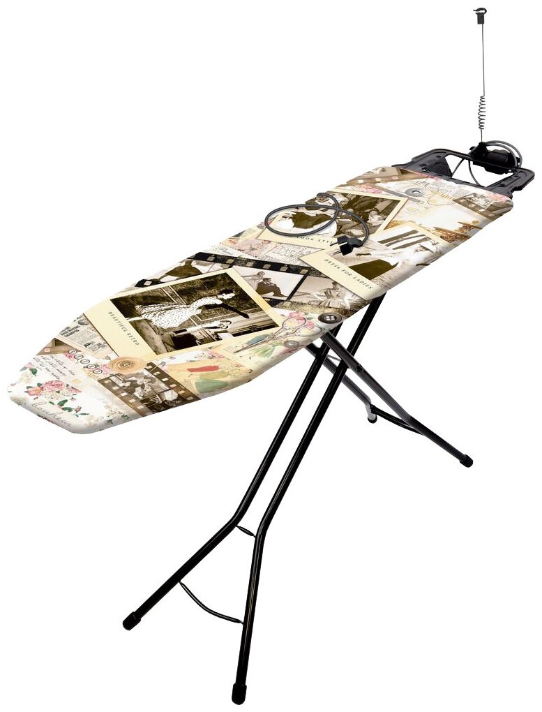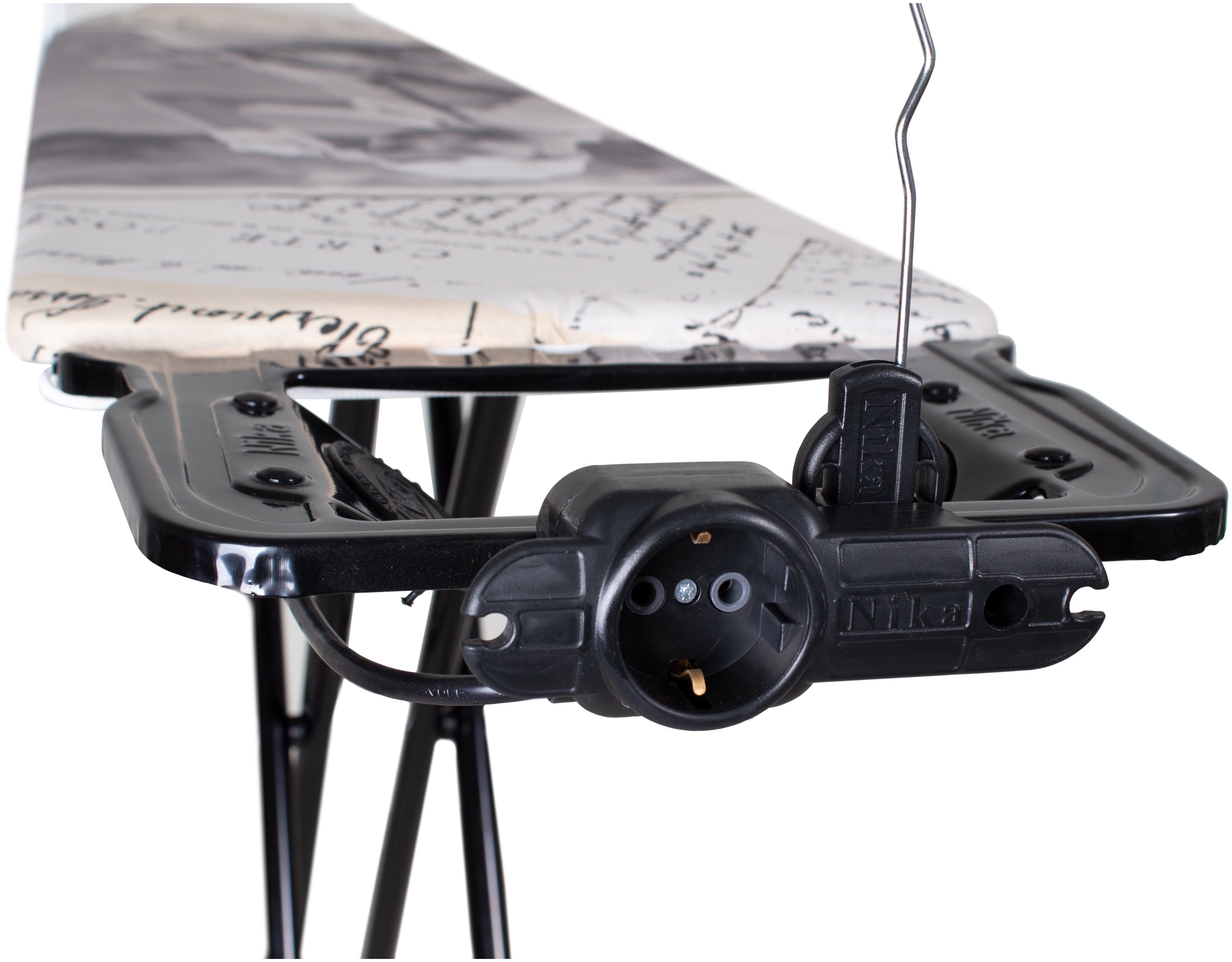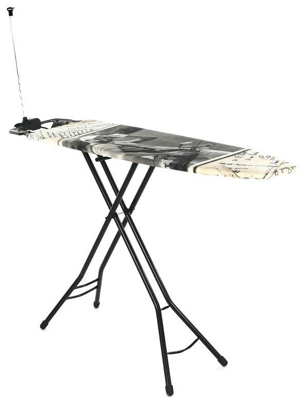 комплектация: подставка для утюга, встроенная розетка для утюга, кронштейн для провода, удлинитель, материал столешницы: металл, тип столешницы: с перфорацией, материал каркаса: металл, длина гладильной поверхности: 122 см, ширина гладильной поверхности: 34 см, особенности: регулировка высоты, съемный чехол, противоскользящие насадки