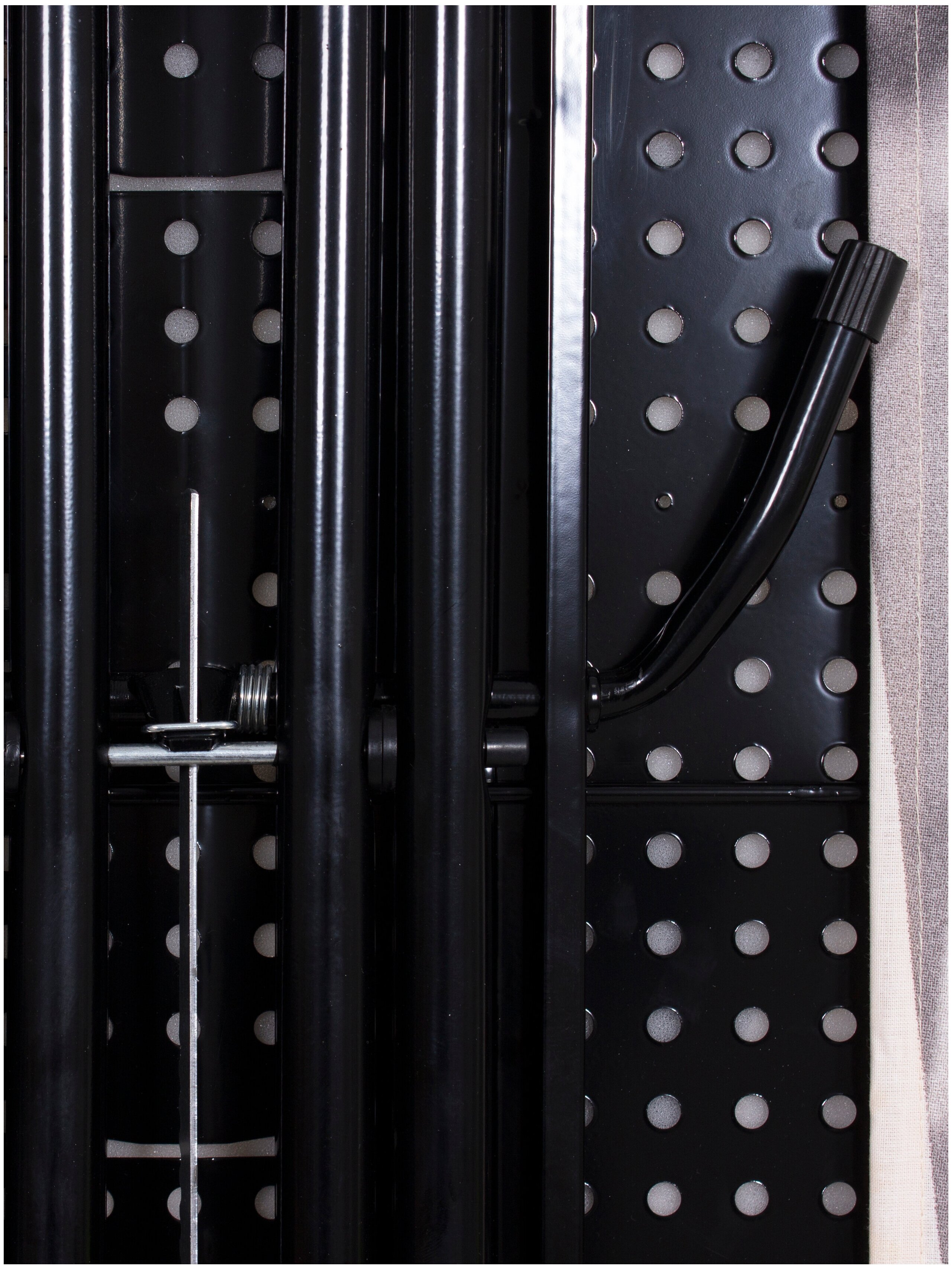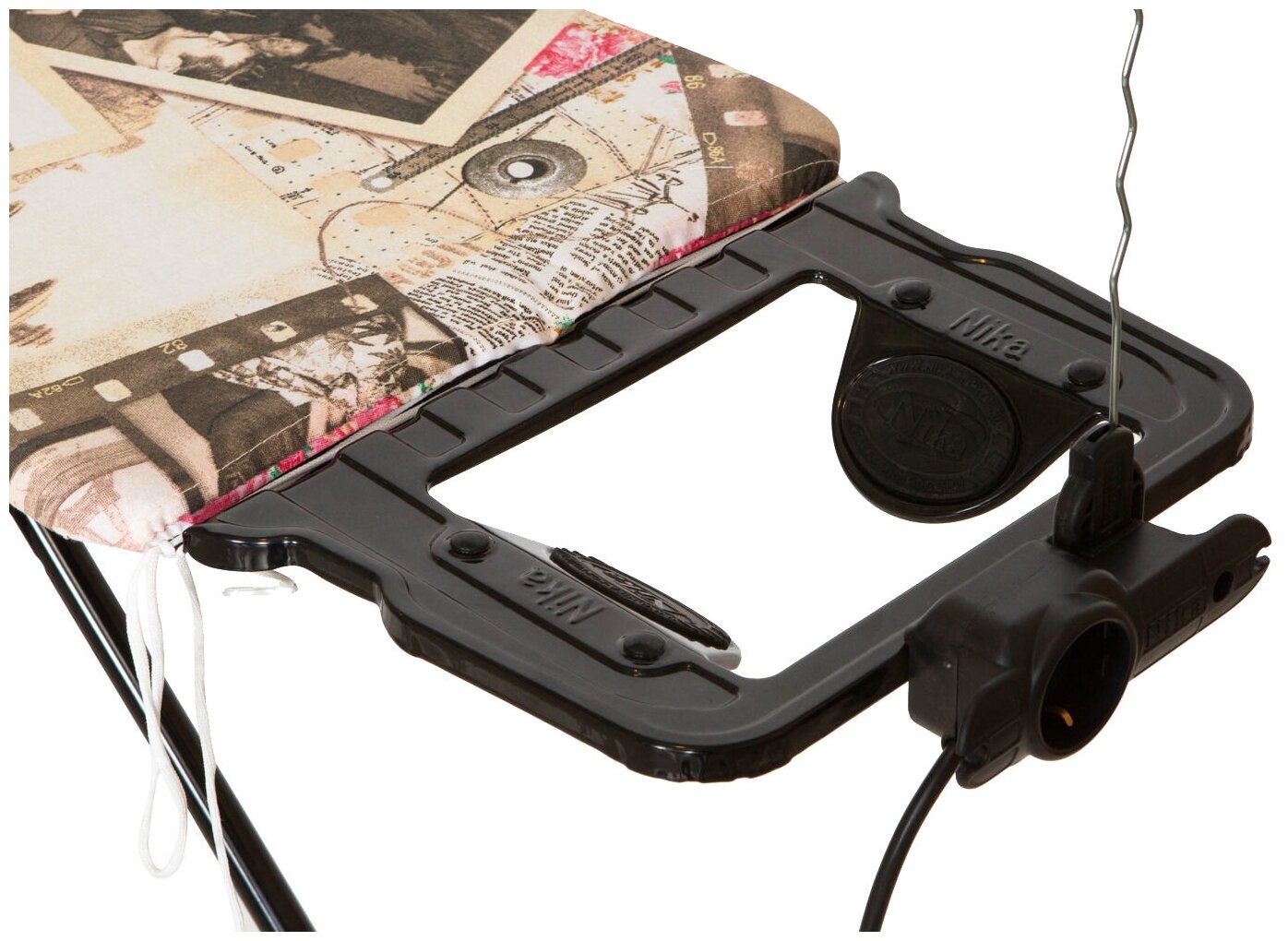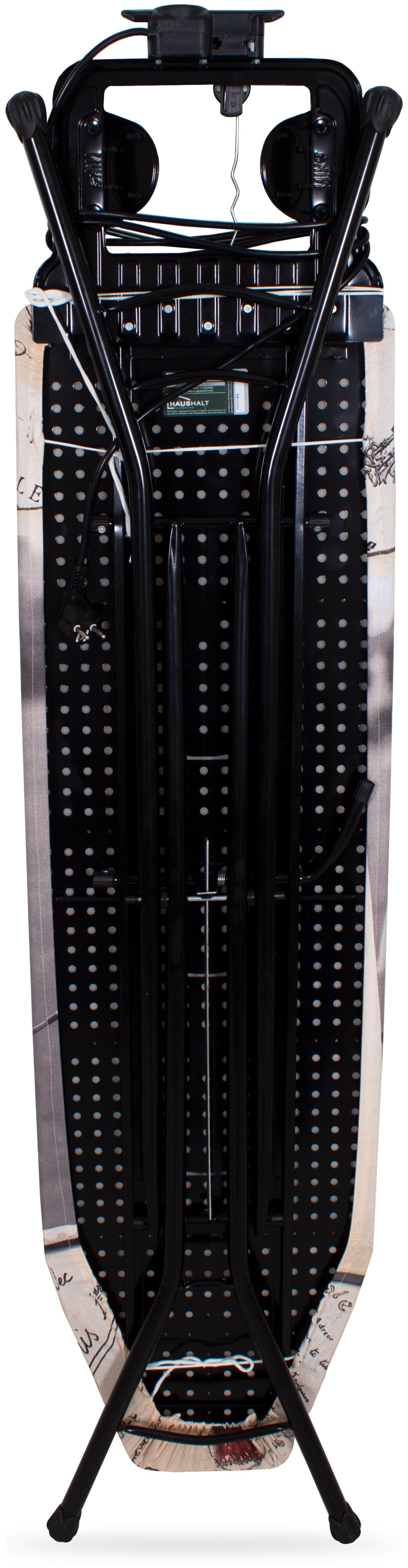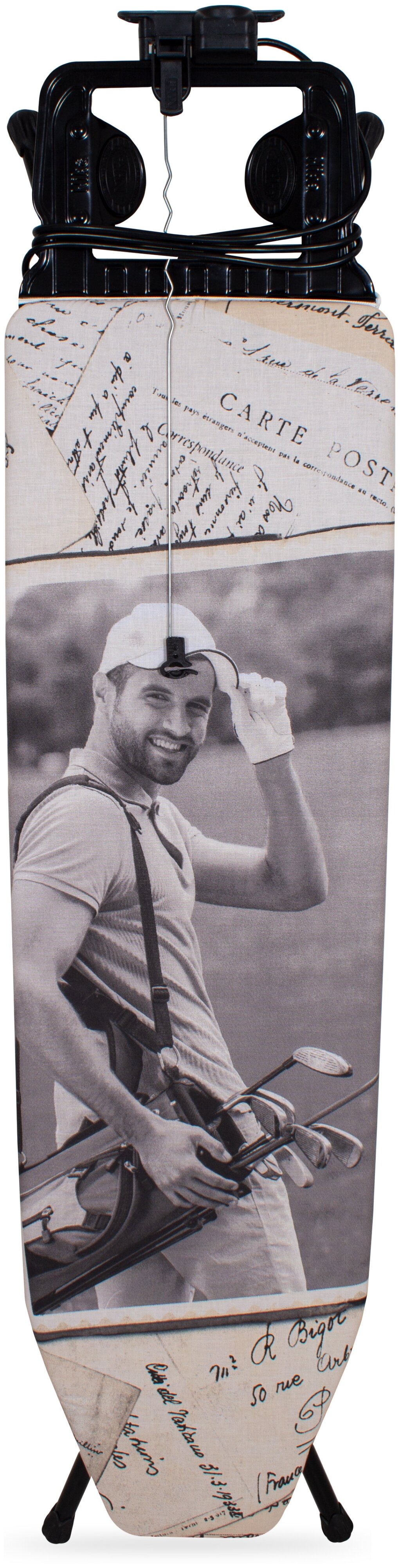 комплектация: подставка для утюга, встроенная розетка для утюга, кронштейн для провода, удлинитель, материал столешницы: металл, тип столешницы: с перфорацией, материал каркаса: металл, длина гладильной поверхности: 122 см, ширина гладильной поверхности: 34 см, особенности: регулировка высоты, съемный чехол, противоскользящие насадки