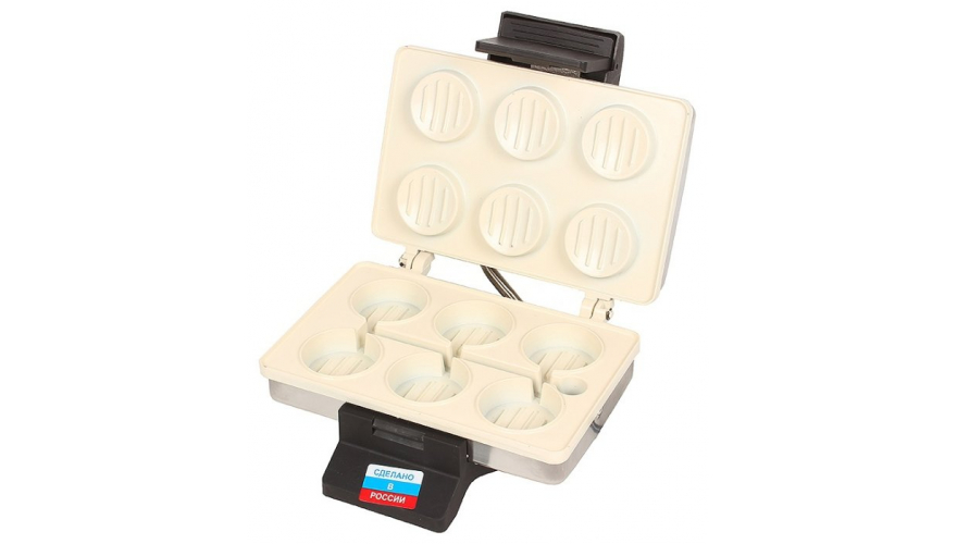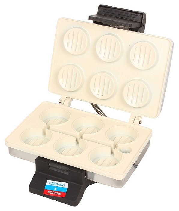 мощность 1000 Вт; механическое управление; металлический корпус; панель: котлеты; порций: 6; регулировка температуры; число режимов: 1; индикатор работы; 1.50 кг