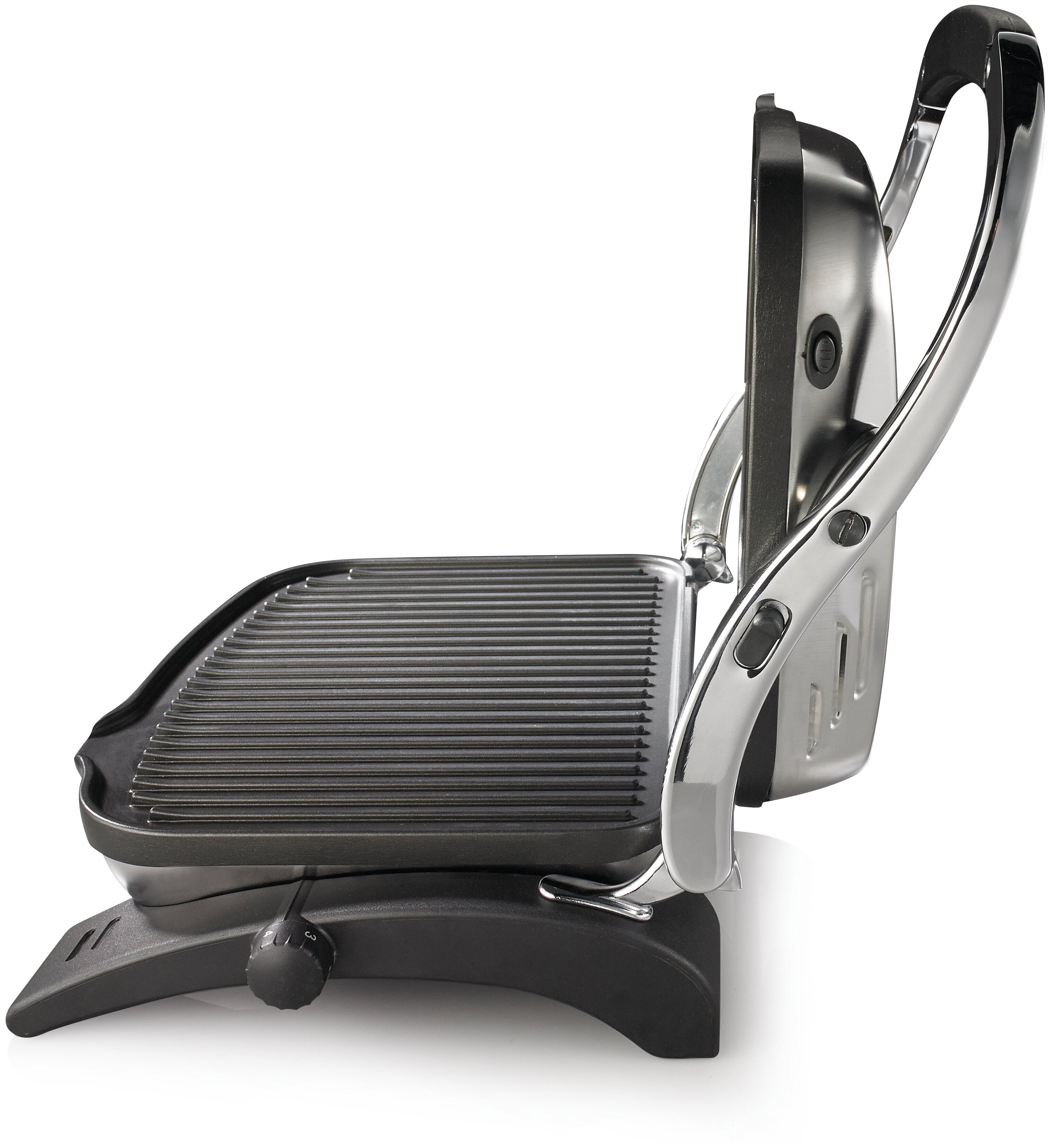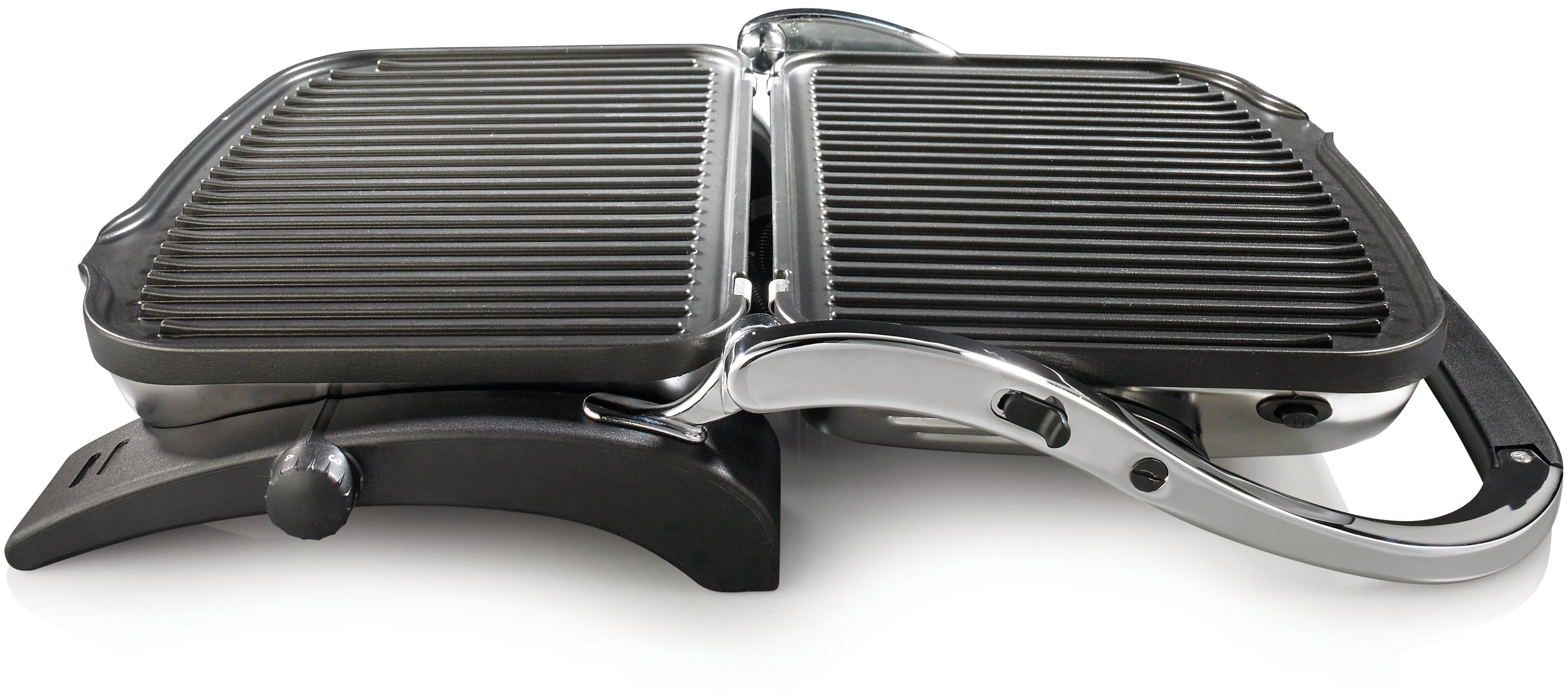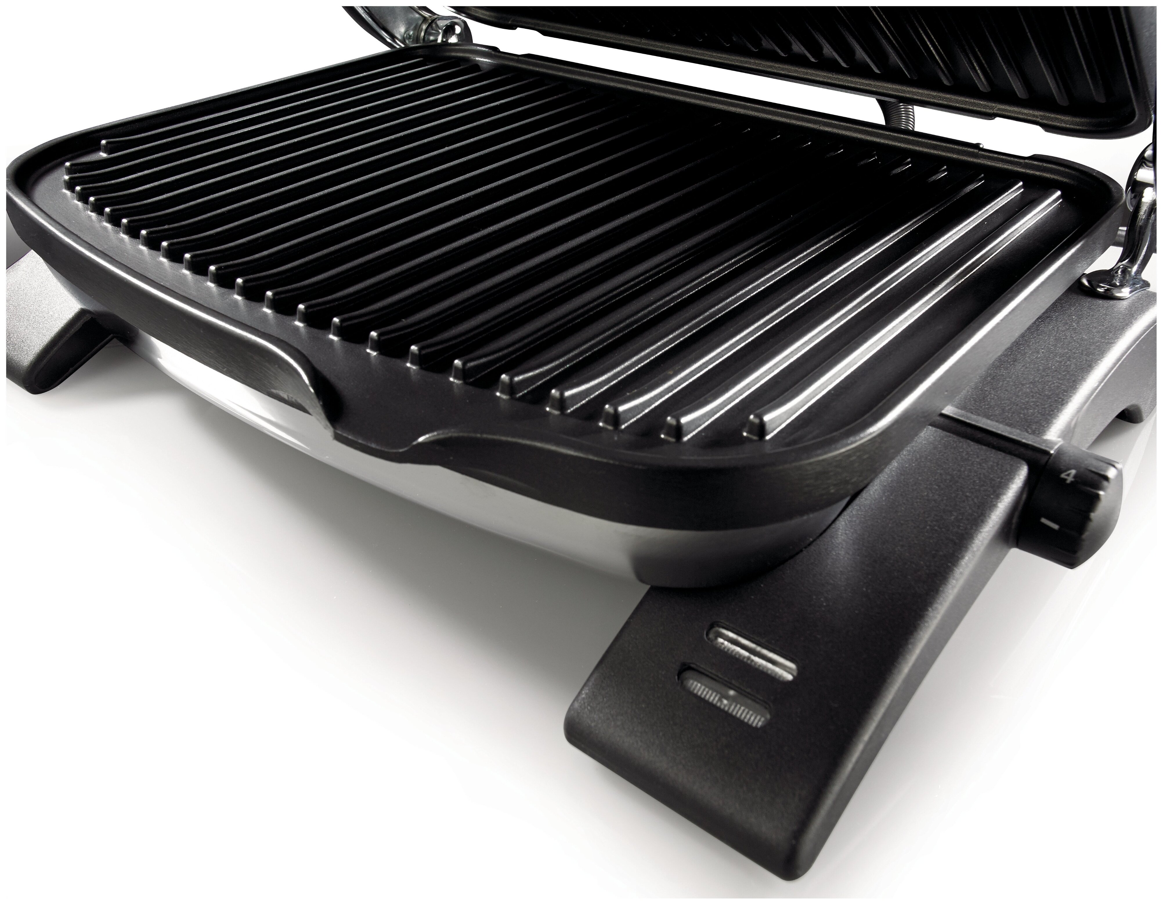 тип: гриль, мощность: 1800 Вт, управление: механическое, особенности: антипригарное покрытие, регулировка высоты верхней панели, поддон для сбора жира, контактный гриль, дополнительные функции: возможность использования верхней панели как самостоятельной, регулировка температуры, материал рабочей поверхности: металл, вес: 5 кг