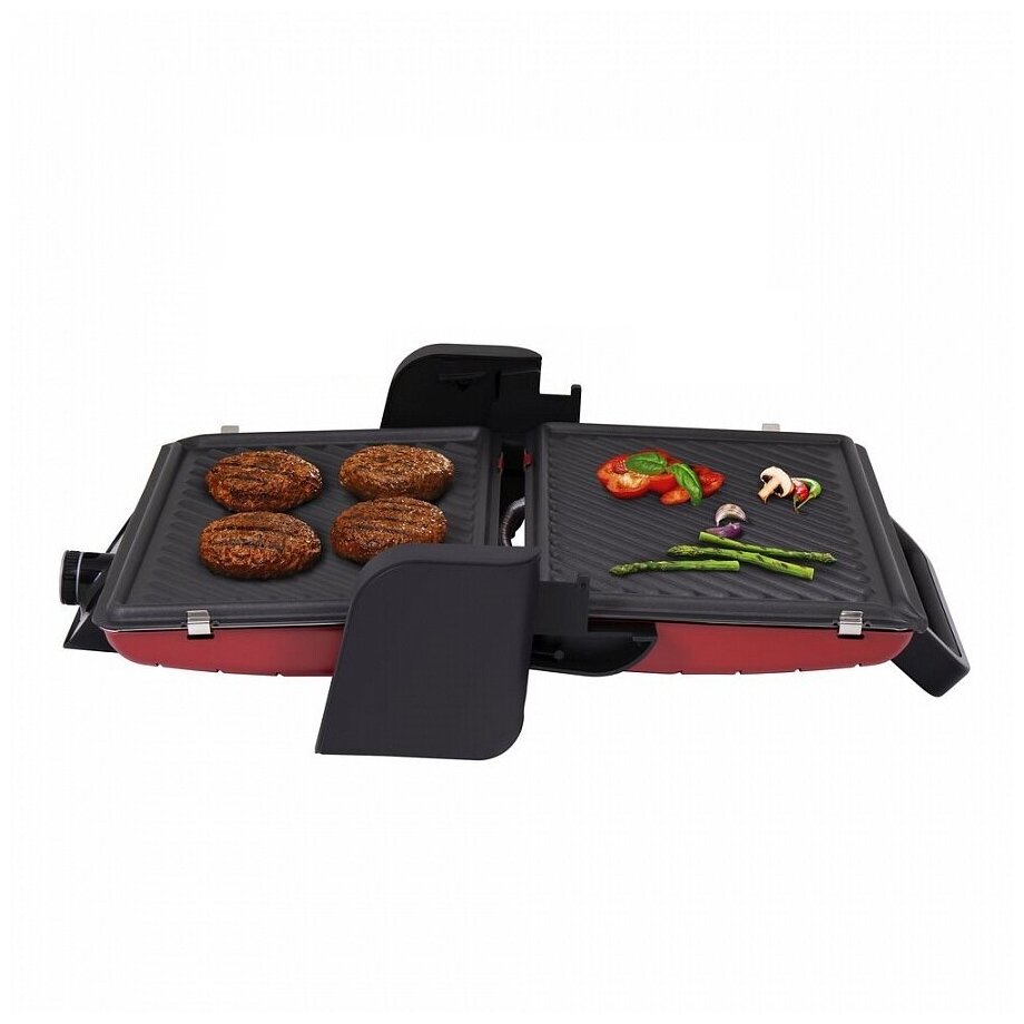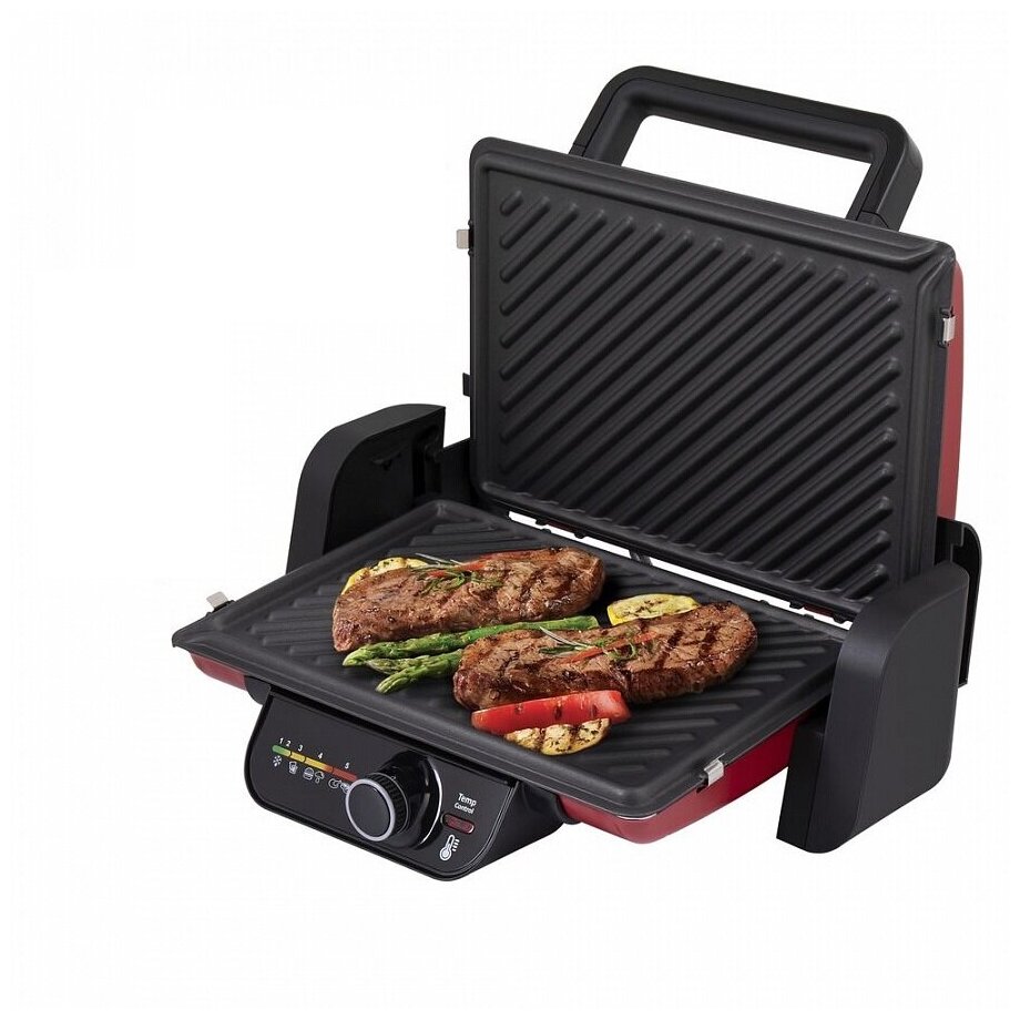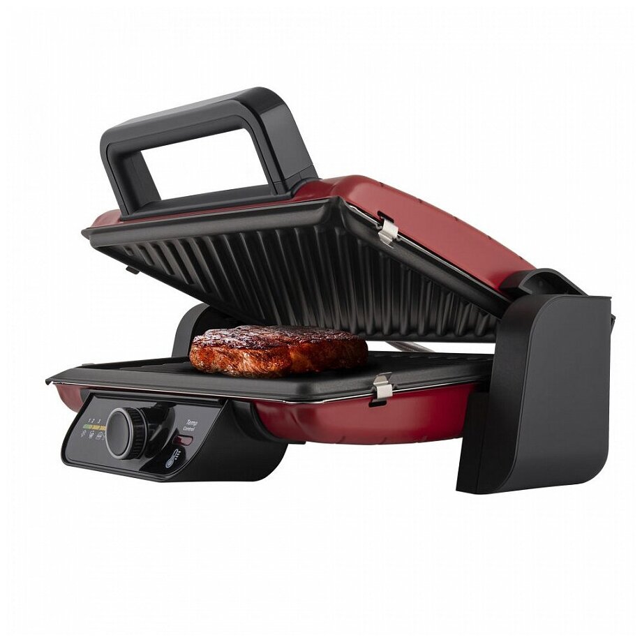 мощность 2000 Вт; механическое управление; регулировка температуры; антипригарное покрытие; поддон для сбора жира