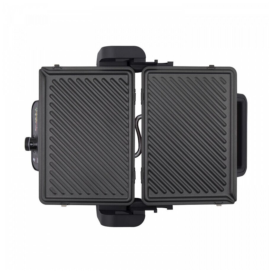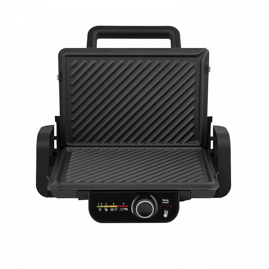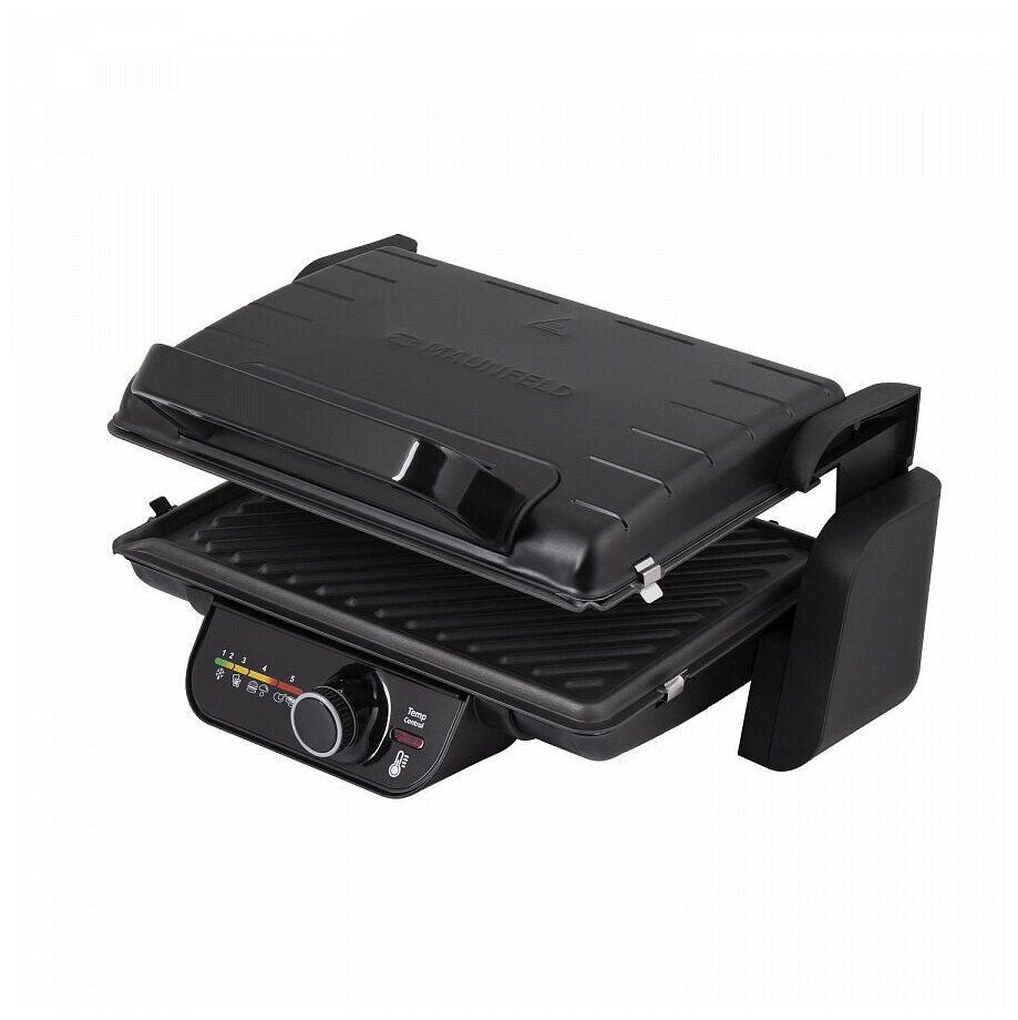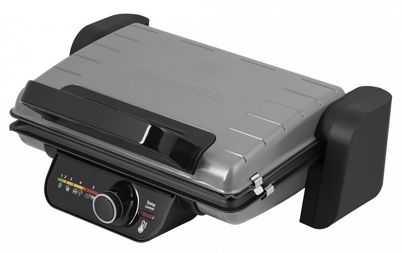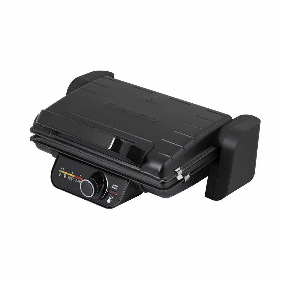 мощность 2000 Вт; механическое управление; регулировка температуры; антипригарное покрытие; поддон для сбора жира