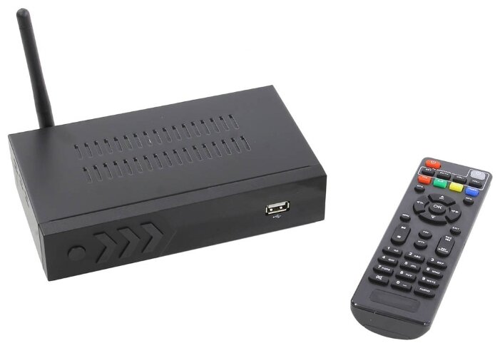 DVB-C, DVB-T, DVB-T2; поддержка режима 1080p; воспроизведение файлов; выход HDMI; Wi-Fi; пульт ДУ