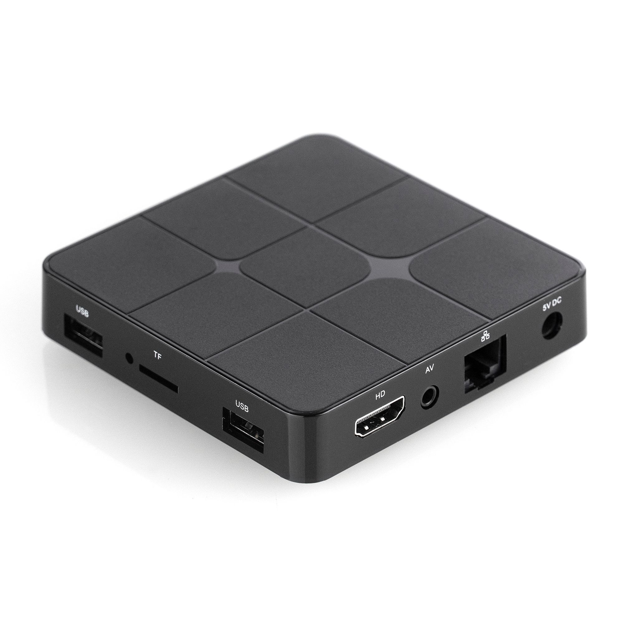 ТВ-приставка на Android 7.1; поддержка 4K UHD; встроенная память 16 ГБ, оперативная память 2 ГБ; встроенный Wi-Fi-модуль, Bluetooth; пульт ДУ; количество USB-портов: 2; выход HDMI