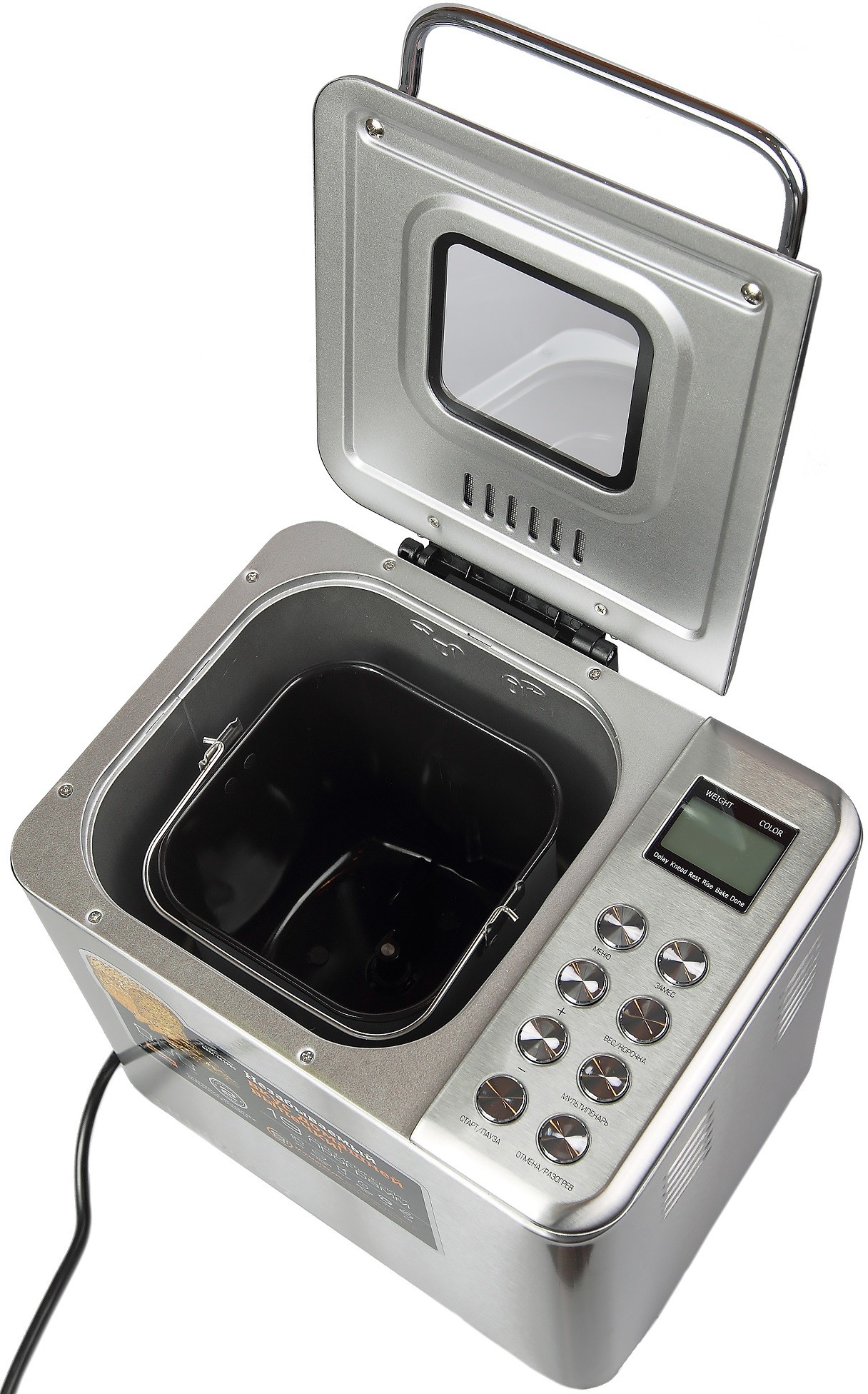 вес выпечки 750 г; варенье, безглютеновая выпечка, ржаной хлеб, кекс, французский багет, пшеничный хлеб, хлеб из муки грубого помола; выбор цвета корочки, таймер, регулировка веса выпечки, ускоренная выпечка; выпечка в форме буханки; 19 автоматических программ; пользовательский режим