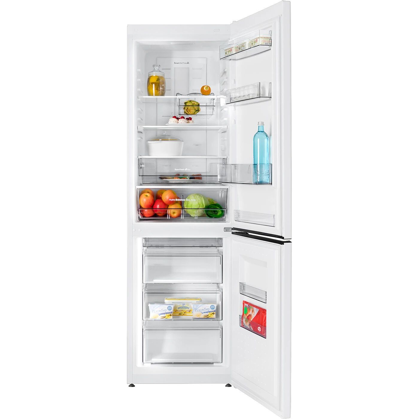 Категория холодильного прибора: 7: Автодоводчик закрытия дверей: 1: Система охлаждения : FULL NO FROST: Цвет корпуса : белый: Класс энергоэффективности : A+: Количество компрессоров : 1 шт: Уровень шума : 42 дБА: Климатический класс : SN, N, ST: Перенавешиваемые двери : Да: Внутреннее LED освещение : Да: Электронный блок управления и индикации : Да: Тип ручки : скрытая: Номинальная потребляемая мощность: 200 Вт: Количество камер: 2 шт: Количество дверей : 2 шт: Полный полезный объeм : 329 л: Общий объем : 368 л: Полезный объем холодильной камеры : 235 л: Полезный объем морозильной камеры : 94 л: Номинальное напряжение и частота : 220-230 В ~ 50 Гц: Годовое энергопотребление : 298 кВт.ч: Внешний дисплей : Да: Блокировка дисплея : Да: Самодиагностика : Да: Хладагент : R600a: Температура хранения свежих продуктов, до : 8 °C: Общий объем холодильной камеры : 247 л: Средняя температура хранения свежих продуктов : 4 °C: Функция Суперохлаждение : Да: Функция Отпуск : Да: Звуковая сигнализация при незакрытой двери :