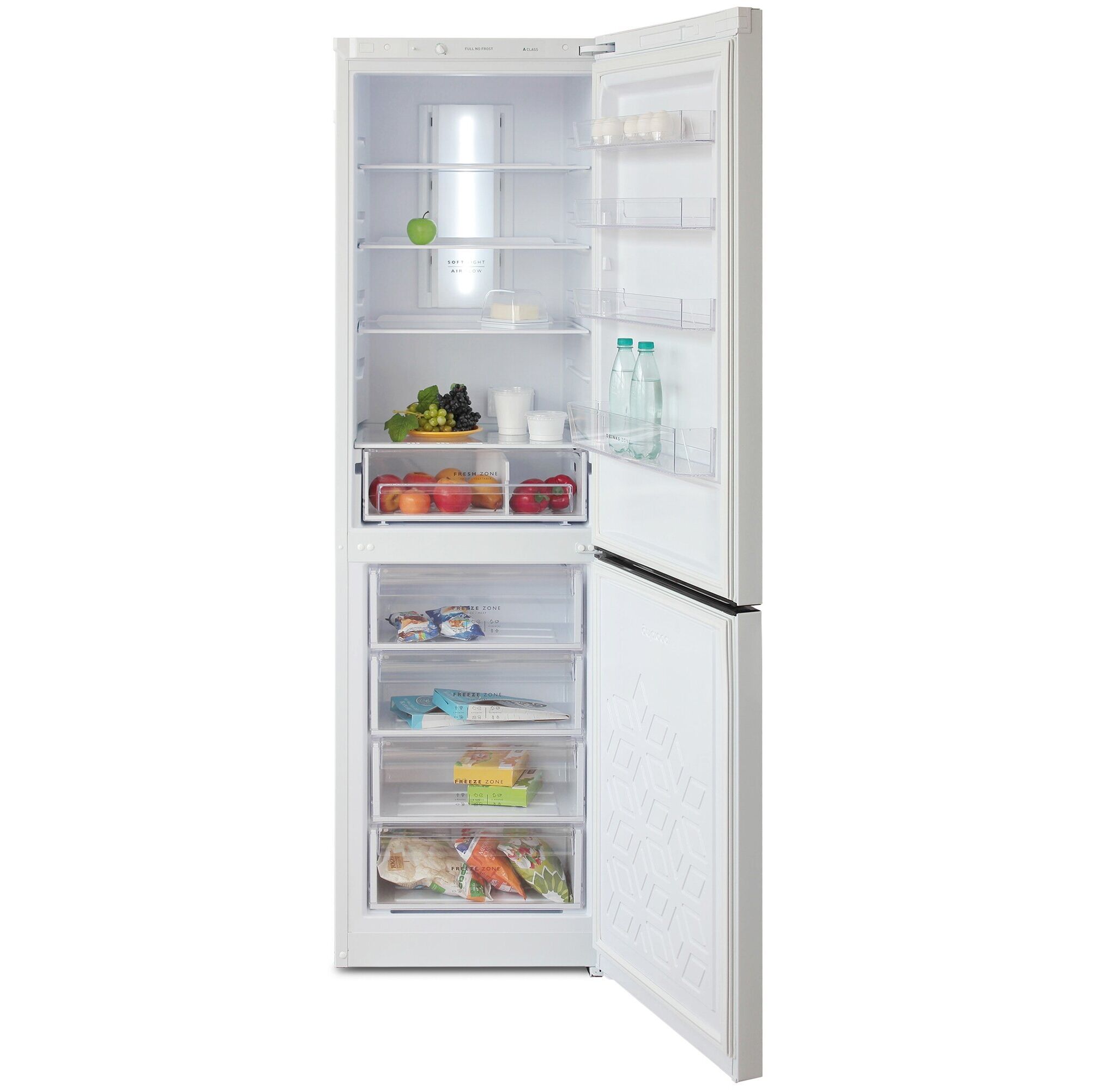 Общие Характеристики: ; Морозильная камера; снизу; Тип управления; электромеханическое; Размораживание морозильной камеры; No Frost; Размораживание холодильной камеры; No Frost; Зона свежести; есть; Класс энергопотребления; A; Тип компрессора; стандартный; Количество компрессоров; 1; Уровень шума; 43 дБ; Управление со смартфона; нет; Уникальные технологии; Multi Air Flow; Габариты и объем; Высота; 207 см; Ширина; 60 см; Глубина; 62.5 см; Общий объем; 370 л; Объем холодильной камеры; 240 л; Объем морозильной камеры; 130 л; Производитель ность и режимы; Мощность замораживания; 5 кг/сут; Режимы; суперзаморозка, суперохлаждение; Диапазон температуры в камере шкафа; 0-8 °C; Минимальная температура в морозильной камере; -18; Автономное сохранение холода; 17 ч; Оснащение; Количество камер; 2; Количество дверей; 2; Количество полок в холодильном отделении; 4; Количество ящиков в холодильном отделении; 1; Количество ящиков/полок в морозильном отделении; 4; Материал полок; стекло; Климатический класс; N, ST; Особеннос