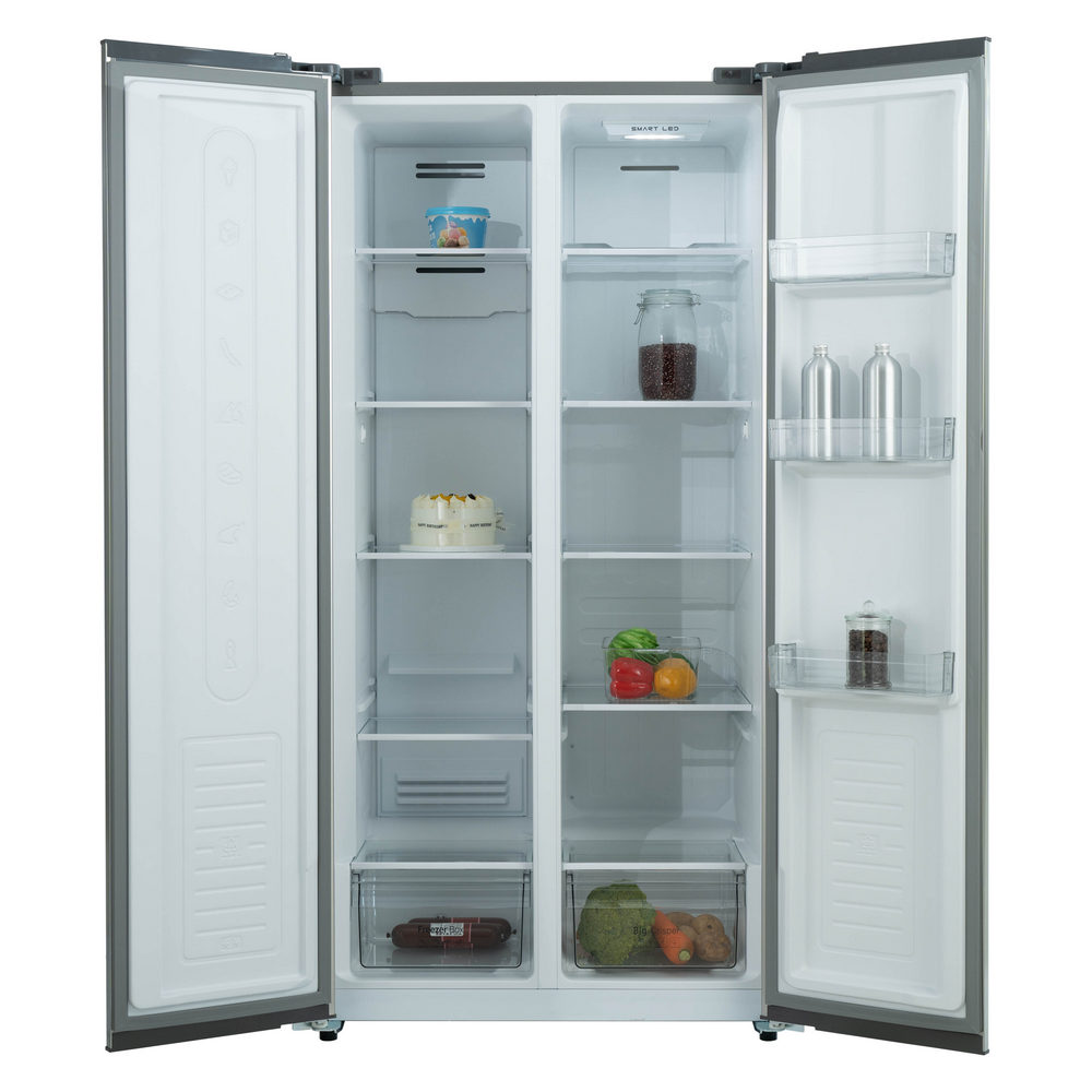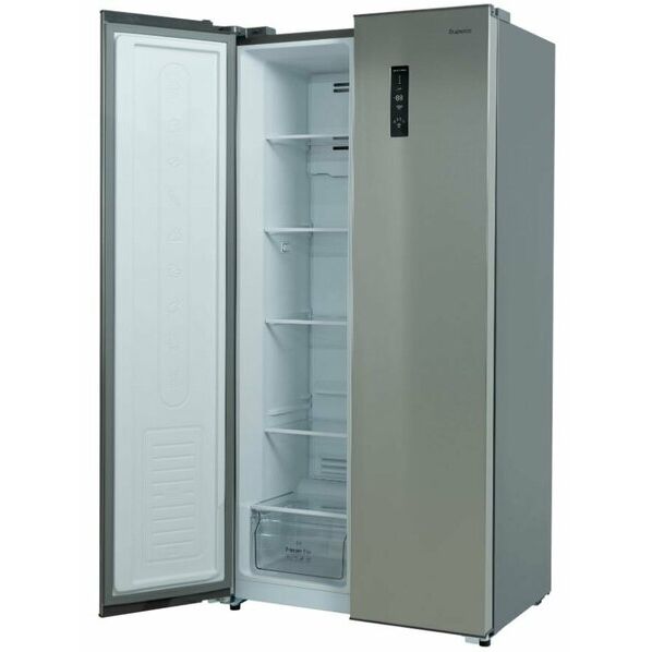 Холодильник: Side-by-side: Цвет : Нержавеющая сталь : Общий объем,л : 400 : Объем холодильной камеры, л : 232 : Объем морозильной камеры, л : 168 : Класс энергоэффективности : A+ : Количество камер : 2 : Расположение морозильной камеры : Слева : Индикация : Да : Управление : Электронное : Система Full No Frost : Да : Количество компрессоров : 1 : Суточный расход электроэнергии, при температуре окружающего воздуха 24°C, кВтч : 1.094 : Климатический класс : ST,SN,N, T : Возможность перевешивания двери : Нет : Максимальный уровень шума, дБ : 42 : Высота, см : 171.2 : Ширина, см : 83.6 : Глубина, см : 61 : Вес, кг : 66 : Количество полок в холодильном отделении : 5 : Температура в отделении для хранения свежих пищевых продуктов : От 2 до 8 °C : Материал полок : стекло/пластик : Оттаивание холодильной камеры : NoFrost : Количество ящиков в холодильном отделении : 1 : Количество ящиков в морозильном отделении : 1 : Размораживание морозильной камеры : NoFrost : Минимальная температура в морозильной камере,