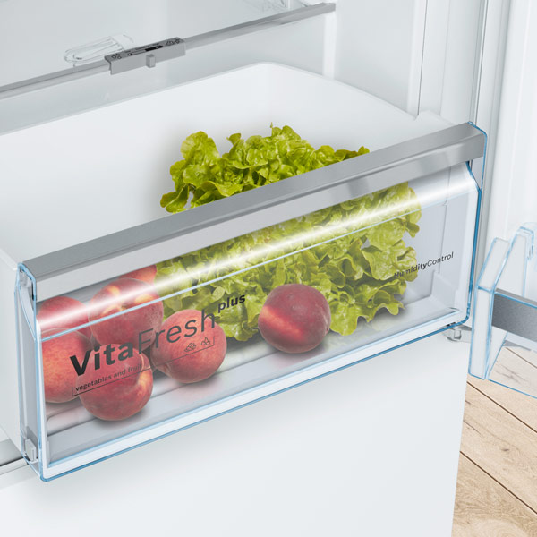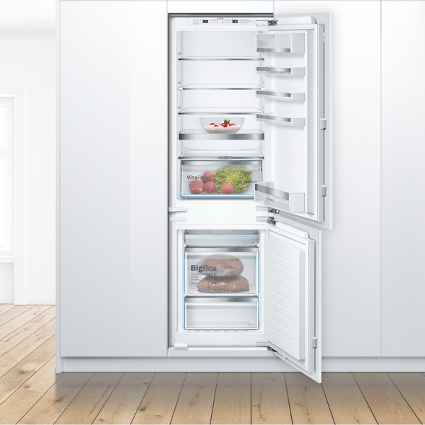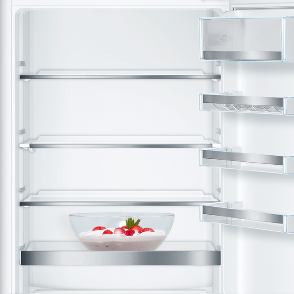 Удобные продуманные полки. Для встроенного холодильника очень хорошая вместительность.Быстрое охлаждение и заморозка. Продукты не портятся, не гниют, не морозится и хранятся долго - главное размещать продукты по категориям как рекомендует производитель. Овощи в отсеке для овощей, мясо - ниже, яйца и сыры - выше
