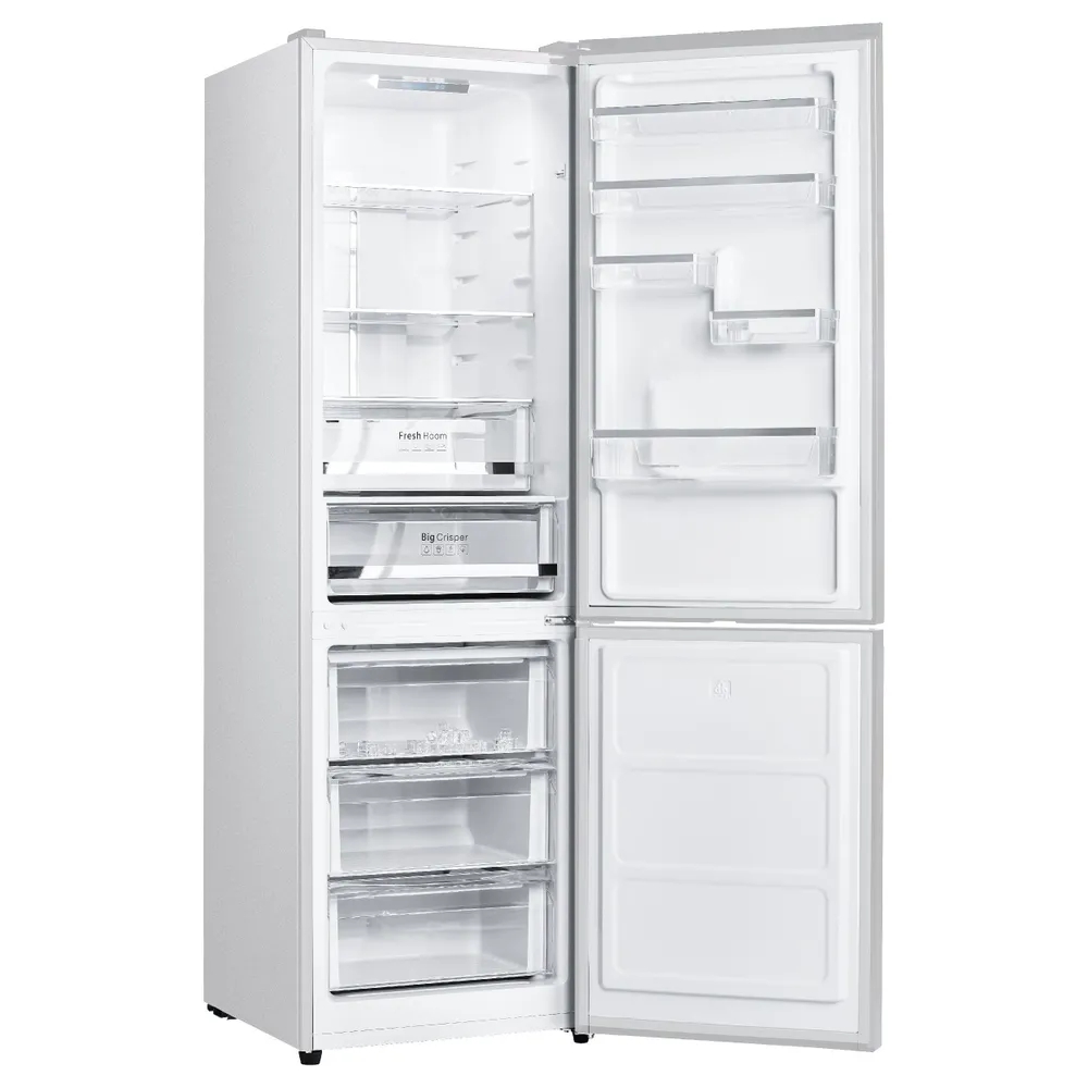 Габариты и вес: Общий объем, л: 344: Размеры, мм (ШхГхВ): 594х645х1950: Общий объем холодильной камеры, л: 235: Общий объем морозильной камеры, л: 109: Ширина, см: 59.4: Глубина, см: 64.5: Высота, см: 195: Вес, кг: 66: Корпус: Открывание дверей: Перевешиваемые двери: Количество дверей: 2: Количество полок: 3: Количество полок на двери: 5: Материал полок: Стекло: Расположение морозильной камеры: Снизу: Конструкция холодильника: ЖК дисплей, Светодиодная подсветка, Скрытые ручки: Количество камер: 2: Основные: Размораживание: No frost: Расположение: Отдельностоящий: Зона свежести: Да: Тип управления: Сенсорное: Функционал холодильника: Авторазморозка, Суперзаморозка, Суперохлаждение: Вид холодильника: С морозильной камерой: Тип охлаждения: Компрессорный: Заводские данные: Мощность замораживания (кг/сут): 9: Вид компрессора: Классический: Количество компрессоров: 1: Автономное сохранение холода, ч: 13: Хладагент: R600A: Макс. уровень шума, дБ: 41: Особенности холодильника: Full No Frost, Дисплей, Светодиодная под