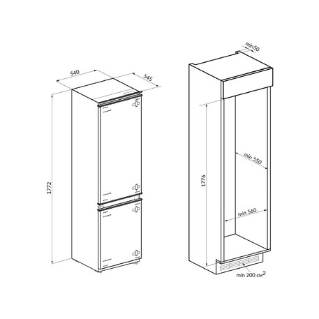 Класс энергопотребления A+, ШхГхВ: 550х560х1776мм, LOW FROST, общий объем 290 л, перевешиваемые двери, Led подсветка, низкий ур. шума до 39 Дб.