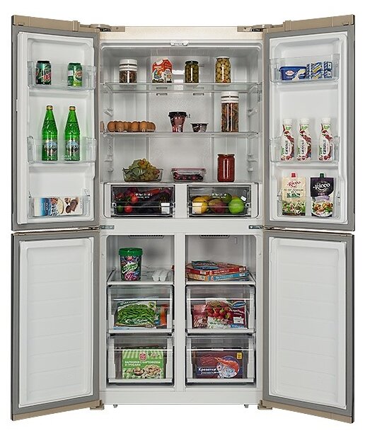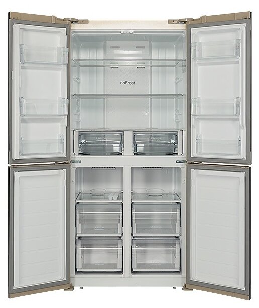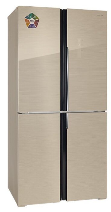 INVERTER; NoFrost; ШхГхВ: 836х636х1830 мм; V=490/440 л (292л/148л); 3 полки; Класс A+; Фреон R600a; Клим. кл. SN, T; 42 дБ; LED освещение. Ионизатор "FRESH +"Фантомный дисплей. Фильтр Humidity control. Увеличенная зона в морозильной камере Дверь: бежевое с полоской стекло. Боковые стенки: бежевая шагрень