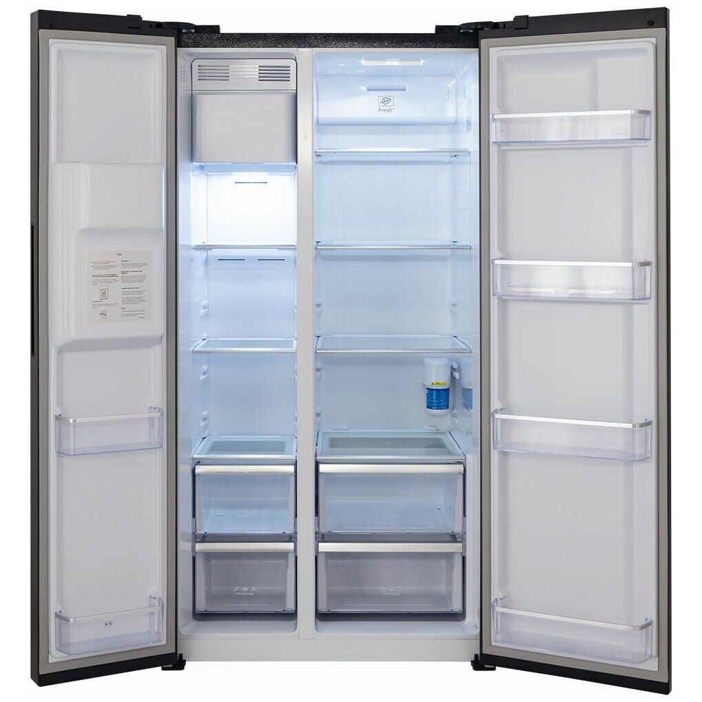 Общие Характеристики: ; Морозильная камера; Side by Side (сбоку); Материал покрытия; стекло; Тип управления; электронное; Размораживание морозильной камеры; No Frost; Размораживание холодильной камеры; No Frost; Энергопотребление; 438 кВтч/год; Класс энергопотребления; A+; Тип компрессора; инверторный; Количество компрессоров; 1; Уровень шума; 42 дБ; Управление со смартфона; нет; Габариты и объем; Высота; 178 см; Ширина; 91.1 см; Глубина; 70.6 см; Общий объем; 618 л; Объем холодильной камеры; 372 л; Объем морозильной камеры; 169 л; Производитель ность и режимы; Мощность замораживания; 12 кг/сут; Режимы; «отпуск», суперзаморозка, суперохлаждение; Диапазон температуры в камере шкафа; +2 + 8; Минимальная температура в морозильной камере; -23; Автономное сохранение холода; 9 ч; Оснащение; Количество камер; 2; Количество дверей; 2; Количество полок в холодильном отделении; 4; Количество ящиков в холодильном отделении; 2; Количество ящиков/полок в морозильном отделении; 5; Материал полок; стекло; Дополнительные фу