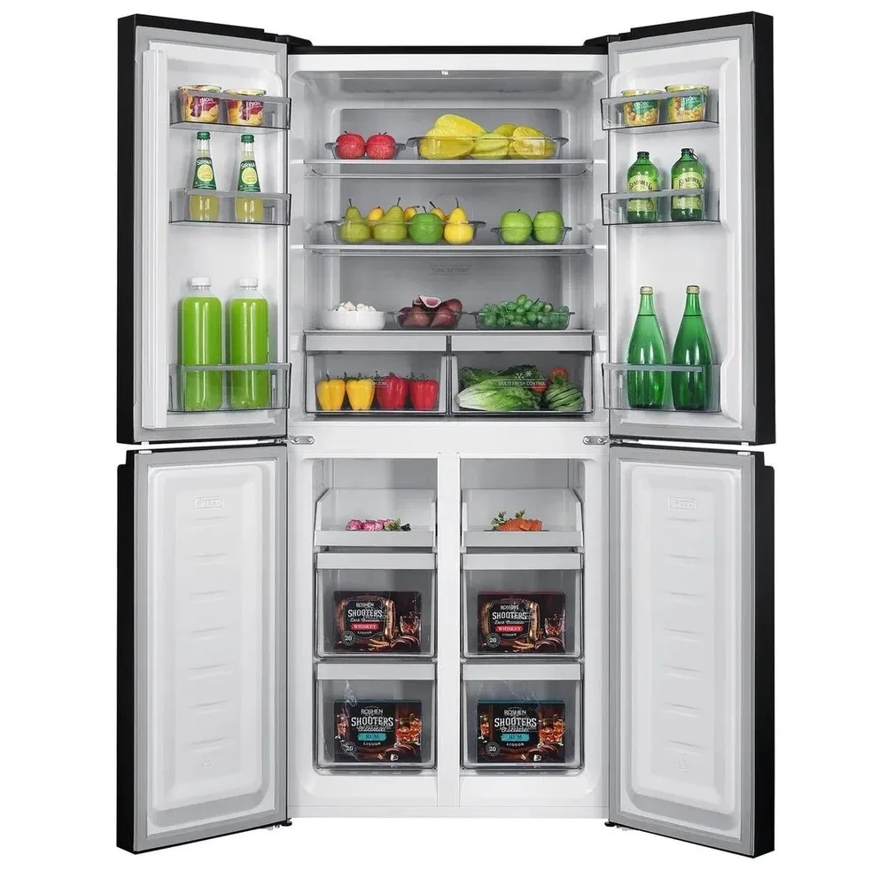 Технические характеристики: Общий объем, л: 466: Класс энергопотребления: A++: Автономное сохранение холода, ч: 12: Мощность замораживания (кг/сут): 13: Макс. уровень шума, дБ: 41: Климатический класс: N-T +16°C / +43°C: Вид компрессора: Инверторный: Годовое потребление, кВт ч/год: 331: Количество компрессоров: 1: Хладагент: R600A: Особенности: Размораживание: No frost: Зона свежести: Да: Вид холодильника: С морозильной камерой: Тип охлаждения: Компрессорный: Конструкция холодильника: ЖК дисплей: Особенности холодильника: Суперохлаждение, Суперзаморозка, Дисплей: Функционал холодильника: Суперохлаждение, Суперзаморозка: Системы защиты: Блокировка от детей: Тип управления: Электронное: Общие: Тип: Холодильник: Страна-изготовитель: Китай: Габариты и вес: Размеры, мм (ШхГхВ): 795x740x1800: Ширина, см: 79.5: Глубина, см: 74: Высота, см: 180: Вес, кг: 85: Конструкция: Количество камер: 3: Расположение морозильной камеры: Снизу: Количество дверей: 4: Цвет: Черный;