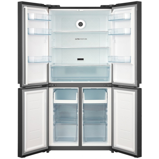 Тип:многокамерный холодильник: Расположение морозильной камеры:снизу: Управление:электронное : Цвет:черный : Полезный объём:456 л : Объём холодильной камеры:310 л : Объём морозильной камеры:156 л : Кол-во компрессоров:1 : Инверторный компрессор:нет: Кол-во камер:3 : Кол-во дверей:4 : Стеклянные двери:да: Сигнализация:есть : Энергопотребление:347 кВтч/год: Класс энeргопотребления:A : Климатический класс:SN-T (от +10 до +43 С) : Уровень шума:42 дБ : Холодильная камера:есть : Размораживание холодильной камеры:No Frost: Морозильная камера:есть : Размораживание морозильной камеры:No Frost : Зона свежести:есть: Льдогенератор:нет : Материал полок:стекло : Высота:178 см: Ширина:83 см: Глубина:66 см : Вес:96 кг ;;;;