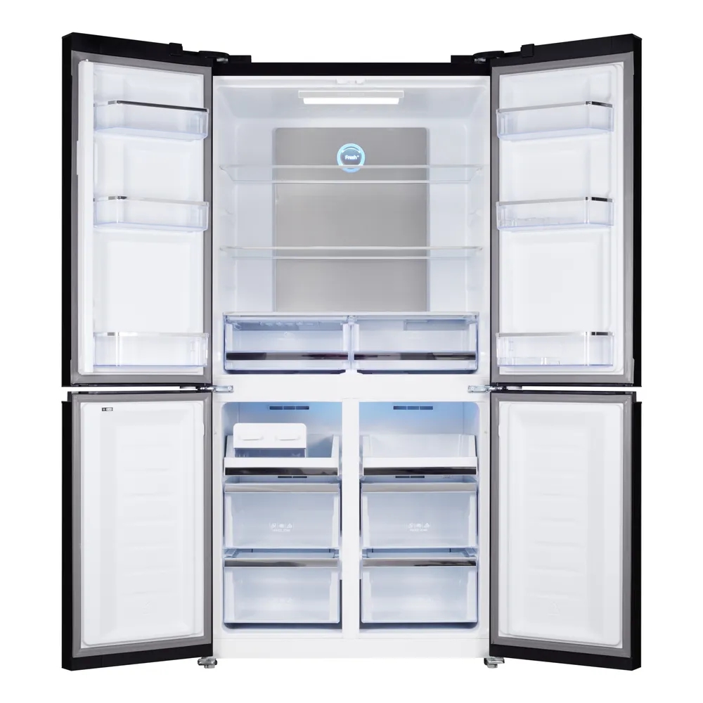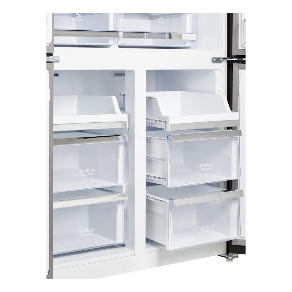 Тип: Холодильник: Страна-изготовитель: Китай: Энергопотребление: Класс энергопотребления: A++: Климатический класс: SN-T +10°C / +43°C: Габариты и вес: Общий объем, л: 542: Размеры, мм (ШхГхВ): 911x706x1830: Общий объем холодильной камеры, л: 367: Общий объем морозильной камеры, л: 175: Ширина, см: 91.1: Глубина, см: 70.6: Высота, см: 183: Вес, кг: 108: Корпус: Открывание дверей: В стороны: Количество дверей: 4: Количество полок: 3: Количество полок на двери: 3: Покрытие дверей: Антибактериальное: Покрытие корпуса: Глянцевое: Материал полок: Закаленное стекло: Расположение морозильной камеры: Снизу: Количество камер: 2: Конструкция холодильника: ЖК дисплей, Скрытые ручки, Светодиодная подсветка, Замок, Ручки легкого открывания: Заводские данные: Мощность замораживания (кг/сут): 14: Вид компрессора: Инверторный: Количество компрессоров: 1: Макс. уровень шума, дБ: 42: Хладагент: R600A: Особенности холодильника: Full No Frost, Антибактериальное покрытие камеры, Генератор льда, Дизайнерское оформление, Дисплей, З