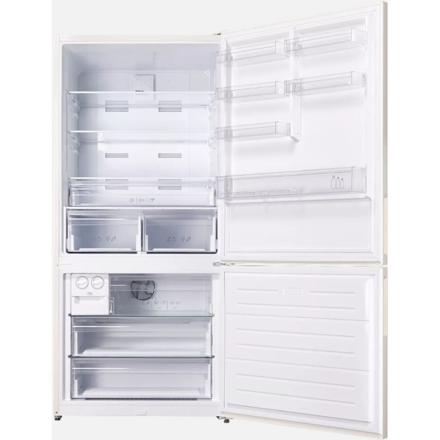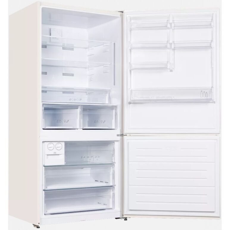 ОСНОВНЫЕ ХАРАКТЕРИСТИКИ: Тип товара: двухкамерный: Тип: отдельностоящий: Коллекция: Классический дизайн: Цвет: бежевый: Высота, см: 186: Ширина, см: 84: Глубина, см: 75: Полезный объем, л: 564: Климатический класс: N-ST: Класс энергопотребления: A+: Звездочное обозначение: ****: ФУНКЦИОНАЛ И КОНСТРУКЦИЯ: Дисплей: Есть: Суперохлаждение: Есть: Суперзаморозка: Есть: Управление: электронное: Индикация открытой двери: звуковая: Система Frost Free (No Frost): в холодильном отделении: в морозильном отделении: Шарнир двери по умолчанию: правый: ХОЛОДИЛЬНОЕ ОТДЕЛЕНИЕ: Система размораживания: автоматическое: Объем, л: 400: Общее количество ящиков: 3: Ящик для овощей и фруктов: 3: Зона свежести: Есть: Общее количество полок: 3: Количество регулируемых полок: 2: Материал полок: стекло: Количество полок на дверце: 6: Отделение для бутылок: Есть: Подставка для яиц: Есть: Освещение: светодиодные лампы: МОРОЗИЛЬНОЕ ОТДЕЛЕНИЕ: Расположение: снизу: Система размораживания морозильного отделения: автоматическое: Объем, л: 164: П