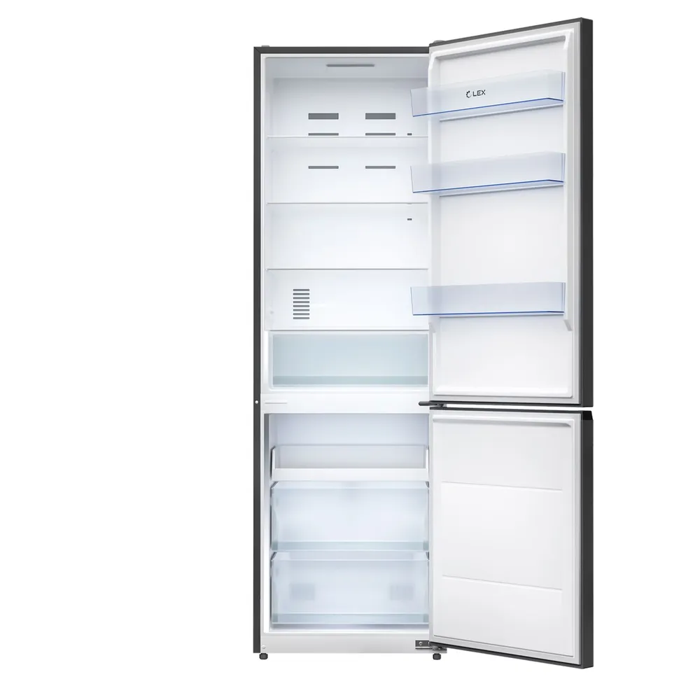 Тип: Отдельностоящий: Управление: Электронное: Цвет: Черный/ стекло: Полезный объем, л: 409: Объем холодильной камеры: 267 л: Объем морозильной камеры: 142 л: Тип разморозки холодильной камеры: No Frost: Тип разморозки морозильной камеры: No Frost: Количество полок/ящиков: В холодильной камере – 4+1/ В морозильной камере – 2: Материал полок: Стекло: Мощность замораживания, кг/сутки: 7: Время поддержания температуры при отключении электроэнергии: 10 ч: Хладагент: R600: Климатический класс: SN, N, ST: Класс энергопотребления: А+: Подсветка: LED-лампа: Уровень шума: 42 дБ: Перенавешиваемые двери: Да: Страна-производитель: КНР: Размер устройства (ВхШхГ): 1850×595×680 мм: Длина сетевого кабеля: 170 см: Размер упаковки: 1890×625×723 мм: Вес в упаковке / без упаковки: 69 кг/63 кг;;