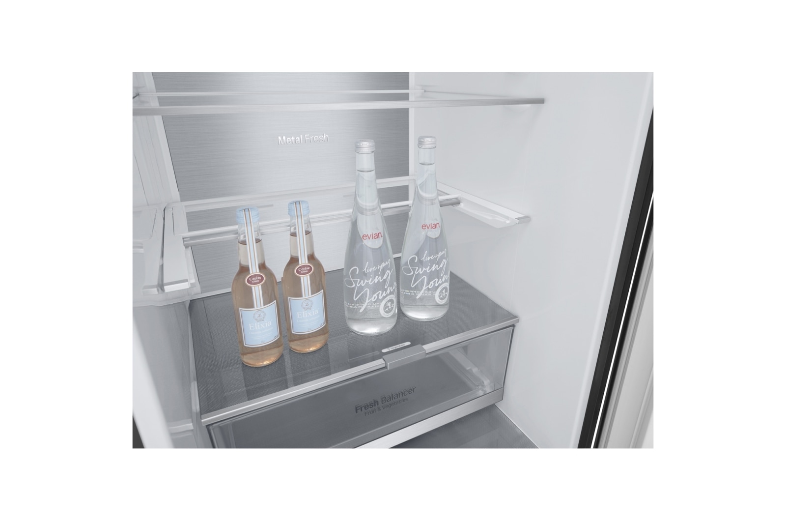 высота: 203 см, морозильная камера: снизу, размораживание морозильной камеры: No Frost, размораживание холодильной камеры: No Frost, количество камер: 2, класс энергопотребления: A++, ширина: 59.50 см, глубина: 68.20 см, общий объем: 384 л, объем холодильной камеры: 277 л, объем морозильной камеры: 107 л, тип компрессора: инверторный, зона свежести, количество компрессоров: 1, особенности конструкции: перевешиваемые двери, складная полка, дисплей, дополнительные функции: индикация температуры, защита от детей, режимы: суперзаморозка, суперохлаждение, уровень шума: 36 дБ