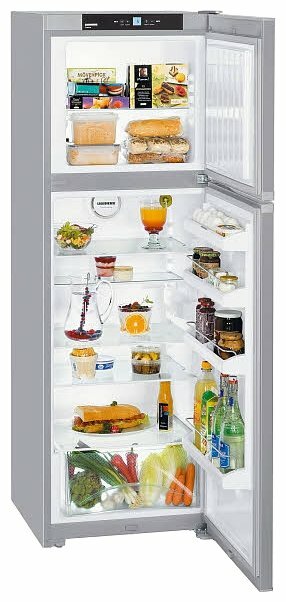 Холодильник Liebherr/ 176.1x60x63, объем камер 23676, морозильная камера верхняя, серебристый