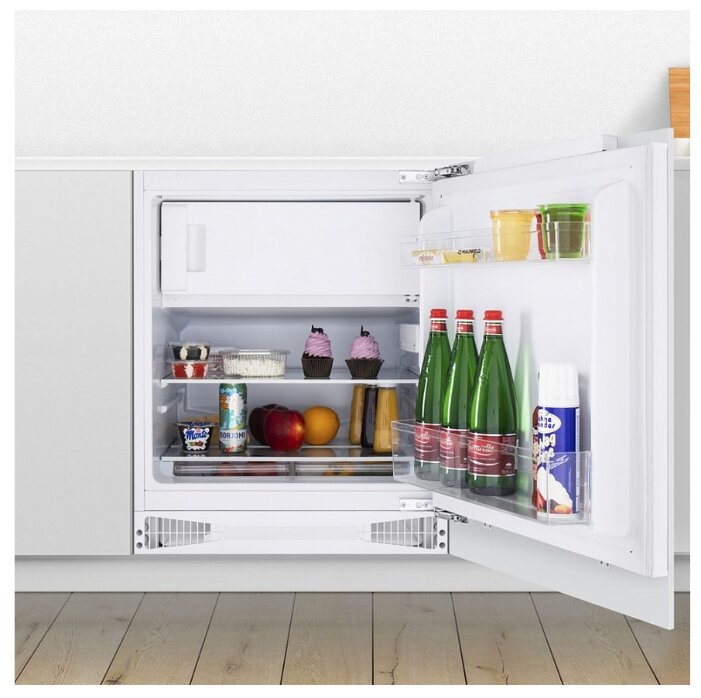 ШхВхГ: 59.60х85х55 см; класс энергопотребления A+; капельная система разморозки; общий объем 111 л; объем холодильной камеры 95 л; объем морозильной камеры 16 л; однокомпрессорный; мощность замораживания 2 кг/сутки; перевешиваемые двери