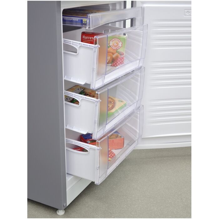 Морозильная камера; снизу; Размораживание морозильной камеры; No Frost; Класс энергопотребления; A+; Количество компрессоров; 1; Уровень шума; 41 дБ; Высота; 203 см; Ширина; 57.4 см; Глубина; 62.5 см; Общий объем; 343 л; Объем холодильной камеры; 238 л