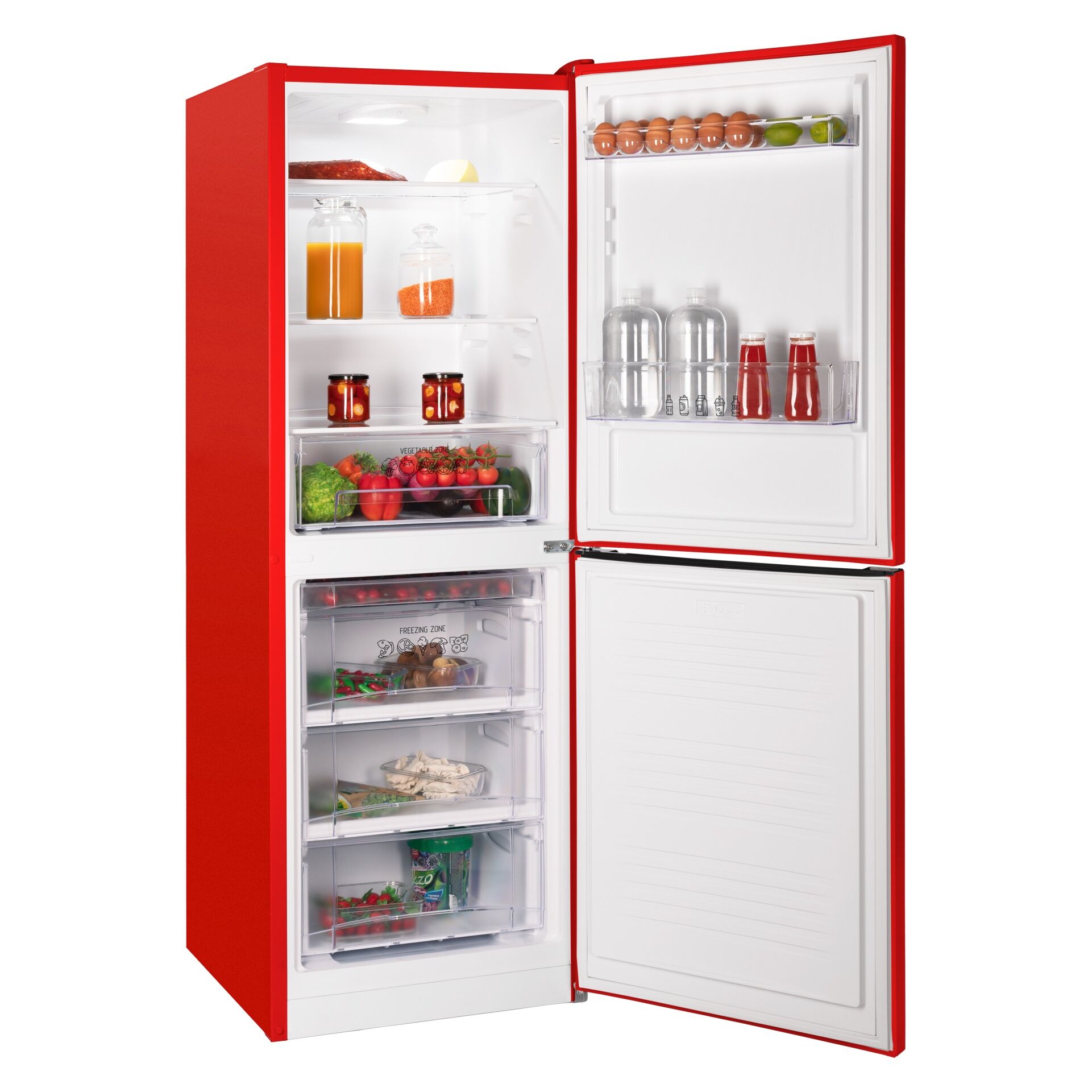 Тип двухкамерный холодильник с нижним расположением морозильной камеры Общий объем, л 275 Объем холодильной камеры (ХК), л 170 Объем морозильной камеры (МК), л 105 Высота х Ширина х Глубина, см 172 х 57 х 63 Вес Нетто, кг 58 Класс энергоэффективности A+ Температура в ХК 0°С...+8°С Количество полок ХК 3 Тип полок в ХК закаленное стекло Ящик для овощей ХК 1 Освещение в ХК LED-подсветка Система оттаивания ХК автоматическая (капельная) Количество полок на дверце ХК 2 Температура в МК не выше -18°С Количество выдвижных ящиков в МК 3 Лоток для ягод в МК 1 Система оттаивания МК NO FROST Производитель ность замораживания, кг/сут 3,5 Хладагент R600a (изобутан) Суточный расход электроэнергии, кВт.час 0,775 Уровень шума, дБ 41 Перенавешиваемые двери да Ручки интегрированные горизонтальные Испаритель запененный Цвет красный