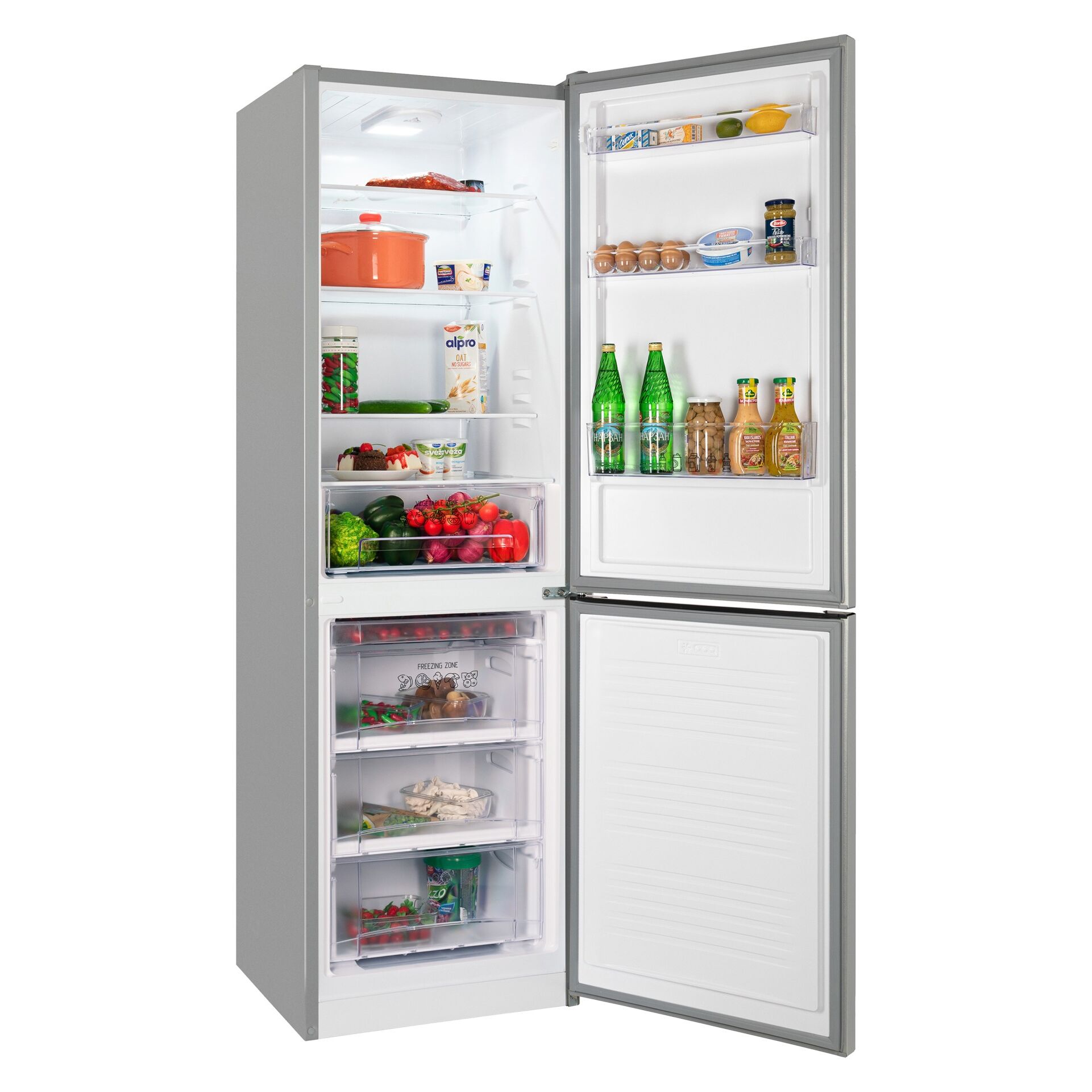 Тип ; двухкамерный холодильник с нижним расположением морозильной камеры; Общий объем, л; 310; Объем холодильной камеры (ХК), л; 205; Объем морозильной камеры (МК), л; 105; Высота х Ширина х Глубина, см; 188 х 57 х 63; Вес Нетто, кг; 63,5; Класс энергоэффективности; A+; Температура в ХК; 0°С...+8°С; Количество полок ХК; 4; Тип полок в ХК; закаленное стекло; Ящик для овощей ХК; 1; Освещение в ХК; LED-подсветка; Система оттаивания ХК; автоматическая (капельная); Количество полок на дверце ХК; 3; Температура в МК; не выше -18°С; Количество выдвижных ящиков в МК; 3; Лоток для ягод в МК; 1; Система оттаивания МК; NO FROST; Производитель ность замораживания, кг/сут; 3,5; Хладагент; R600a (изобутан); Суточный расход электроэнергии, кВт.час; 0,818; Уровень шума, дБ; 41; Перенавешиваемые двери; да; Ручки; интегрированные горизонтальные; Испаритель; запененный; Цвет; серебристый металлик