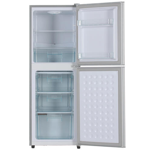 Общие параметры ; Тип конструкции полноразмерный с морозильником ; Основной цвет серебристый ; Основные Характеристики: ; Энергопотребление 172.6 кВтч/год ; Мощность замораживания 5 кг/сутки ; Размораживание морозильной камеры / НТО ручное ; Система холодильного отделения капельная ; Мин. температура морозильный камеры / НТО (C) -18° ; Зона свежести (нулевая камера) нет ; Уровень шума 39 дБ ; Хладагент R600a (изобутан) ; Подставка для яиц нет ; Форма для льда нет ; Подставка для бутылок нет ; Объем ; Общий полезный объем 155 л ; Полезный объем холодильной камеры 72 л ; Полезный объем морозильной камеры / НТО 83 л ; Объем нулевой камеры (зона свежести) нет ; Конструкция ; Количество камер 2 ; Количество дверей 2 ; Расположение морозильной камеры / НТО снизу ; Материал внешнего покрытия пластик, металл ; Материал полок стекло ; Открытие дверцы направо ; Перенавешиваемые двери нет ; Нулевой зазор дверцы нет ; Индикация ; Дисплей нет ; Вид дисплея нет ; Индикация температуры нет ; Индикация отключения электропит