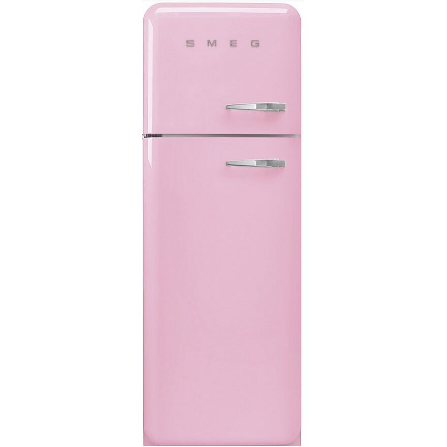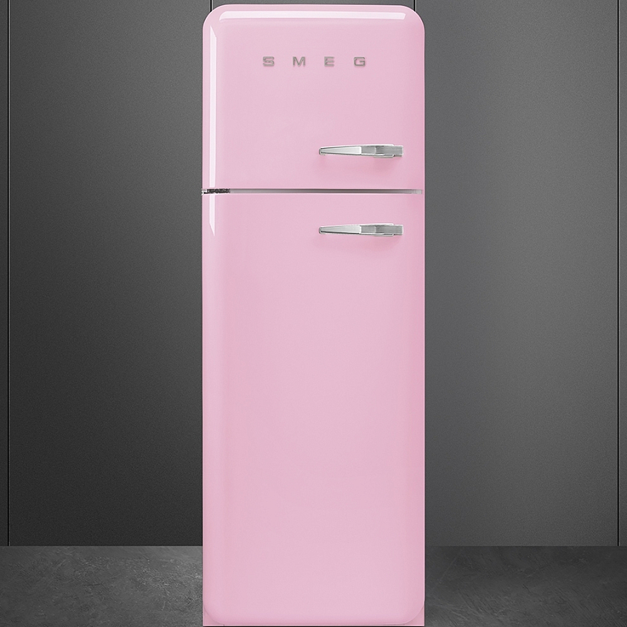 Холодильник SMEG/ Отдельностоящий двухдверный холодильник, стиль 50-х годов, 60 см, розовый, петли слева