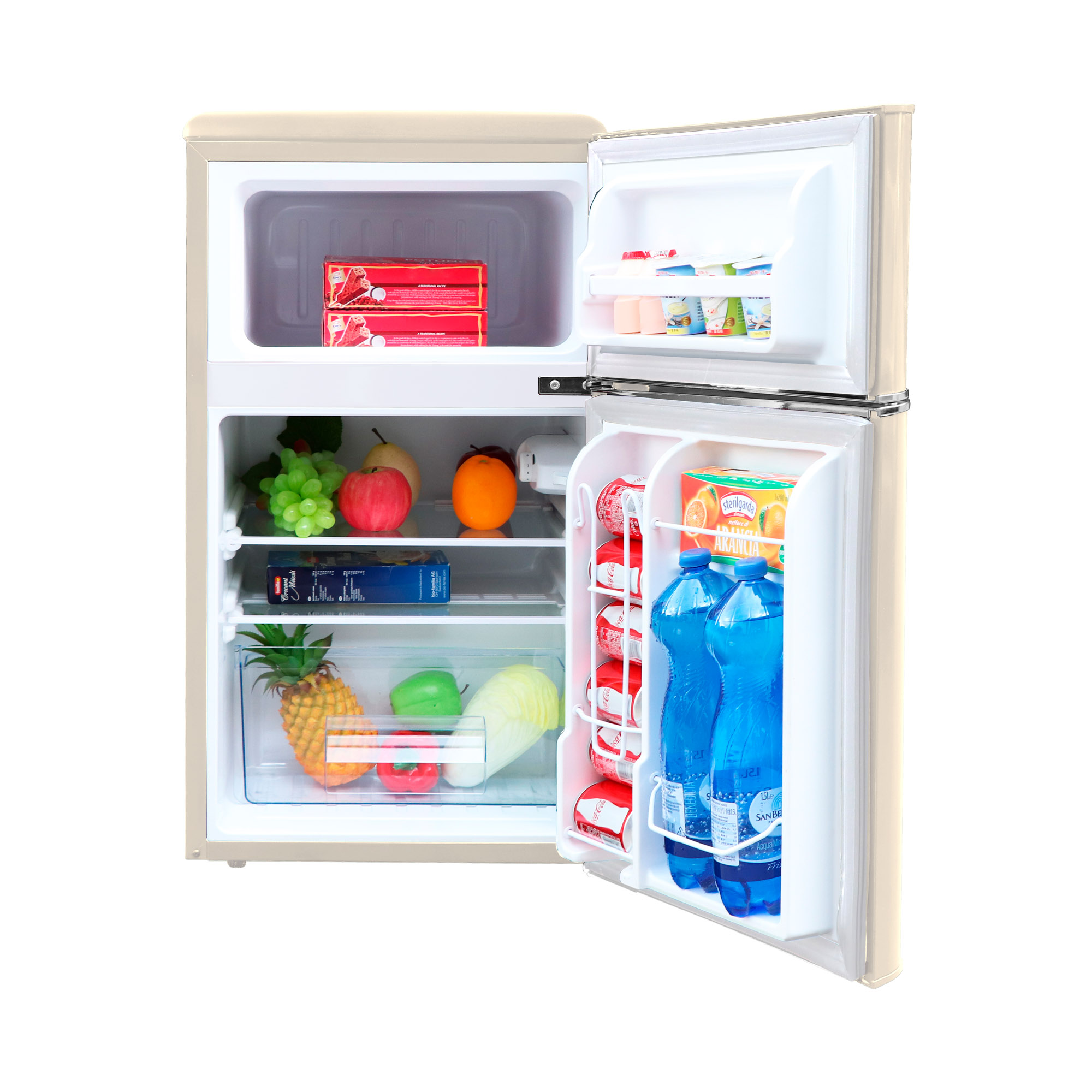 Кол-во камер: : 2: Общий объём: : 91 л: Полезный объём: : 90 л: Объем холодильной камеры: : 64 л: Объем морозильной камеры: : 26 л: Тип управления: : механический: Кол-во компрессоров: : 1: Климатический класс: : SN, N, ST: Хладагент: : R600A: Номинальная потребляемая мощность, Вт: : 100 Вт: Потребление электроэнергии, кВт*ч/год: : 206: Класс энергопотребления: : А+: Подсветка холодильного отделения: : да: Перевешиваемая дверь: : нет: Регулирование температуры: : да, механическое: Количество полок в холодильнике: : 2 шт.: Материал полок: : стекло: Количество полок в дверце морозильной камеры: : 1: Тип разморозки: : капельная: Лоток для льда: : да: Скребок: : нет: Уровень шума, дБ: : 43 дБ: Материал корпуса: : металл: Материал ручек дверцы: : пластик: Цвет: : бежевый: Габариты (ШхГхВ): : 486х520х889 мм: Габариты упаковки (ШхГхВ): : 516х555х941 мм: Вес нетто/брутто: : 24,3/26,8 кг;;;
