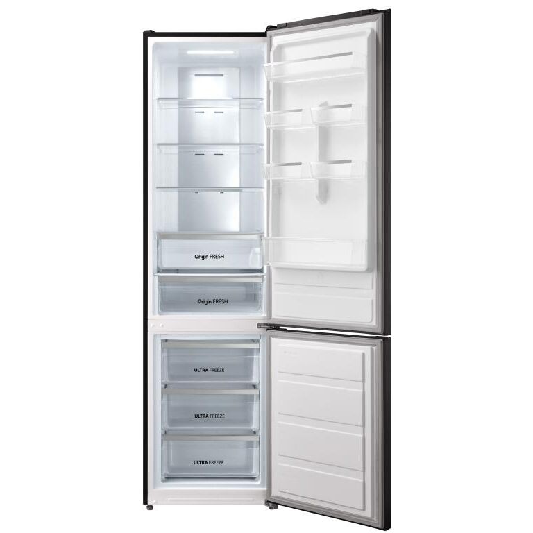 Современные высокотехнологичные запенивающие компоненты и компоновка внутренних элементов позволили увеличить полезный объём камер. : Ящики для овощей с контролем влажностиr : Каждый из ящиков для овощей имеет индивидуальный контроль влажности, благодаря которому фрукты и овощи дольше сохраняют свежесть. : Закрывающаяся верхняя дверная полка : Верхняя дверная полка оснащена крышкой. Здесь удобно хранить косметику или медикаменты. : Chiller зона : Ящик с возможностью установки температуры до -3°С для более длительного хранения мяса без необходимости замораживания. : Двухконтурная система циркуляции воздуха. : Две отдельных системы распределения воздуха обеспечивают более равномерное поддержание температуры и исключают смешение запахов между камерами. : • Multi-air flow (объемное распределение воздуха) : • Двухконтурная система циркуляции воздуха.: • Супер охлаждение.: • Супер замораживание.: • Функция отпуск.: • Перенавешиваемые двери.: • Chiller зона.: • Металлический кожух, закрывающий систему распределения