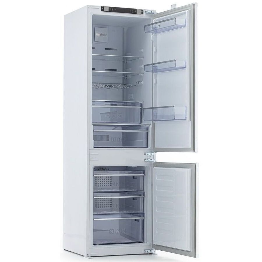 Основное; Общий объем 254 л; Количество камер 2; Контуров охлаждения 2; Компрессоров 1; No Frost Морозильная/холодильная камеры; Функции и возможности; Функции дисплей; перевешивание дверей; Холодильное отделение; Объем холодильной камеры 185 л; Полок 3 шт; Отсеки для хранения зона свежести; полка для бутылок; Быстрое охлаждение; Динамическое охлаждение; Автоматическая разморозка; LED освещение; Морозильное отделение; Морозильная камера снизу; Объем морозильной камеры 69 л; Ящиков морозильной камеры 3 шт; Температура морозилки до -24 °C; Мощность замораживания 3.5 кг/сутки; Быстрая заморозка; Общее; Управление кнопочные переключатели; Класс энергопотребления A+; Климатический класс SN, N, ST; Уровень шума 40 дБ; Габариты (ВхШхГ) 177.5x54x.54.5 см; Размеры для встраивания (ВхШхГ) 1778x560x555 мм; Страна производства Румыния