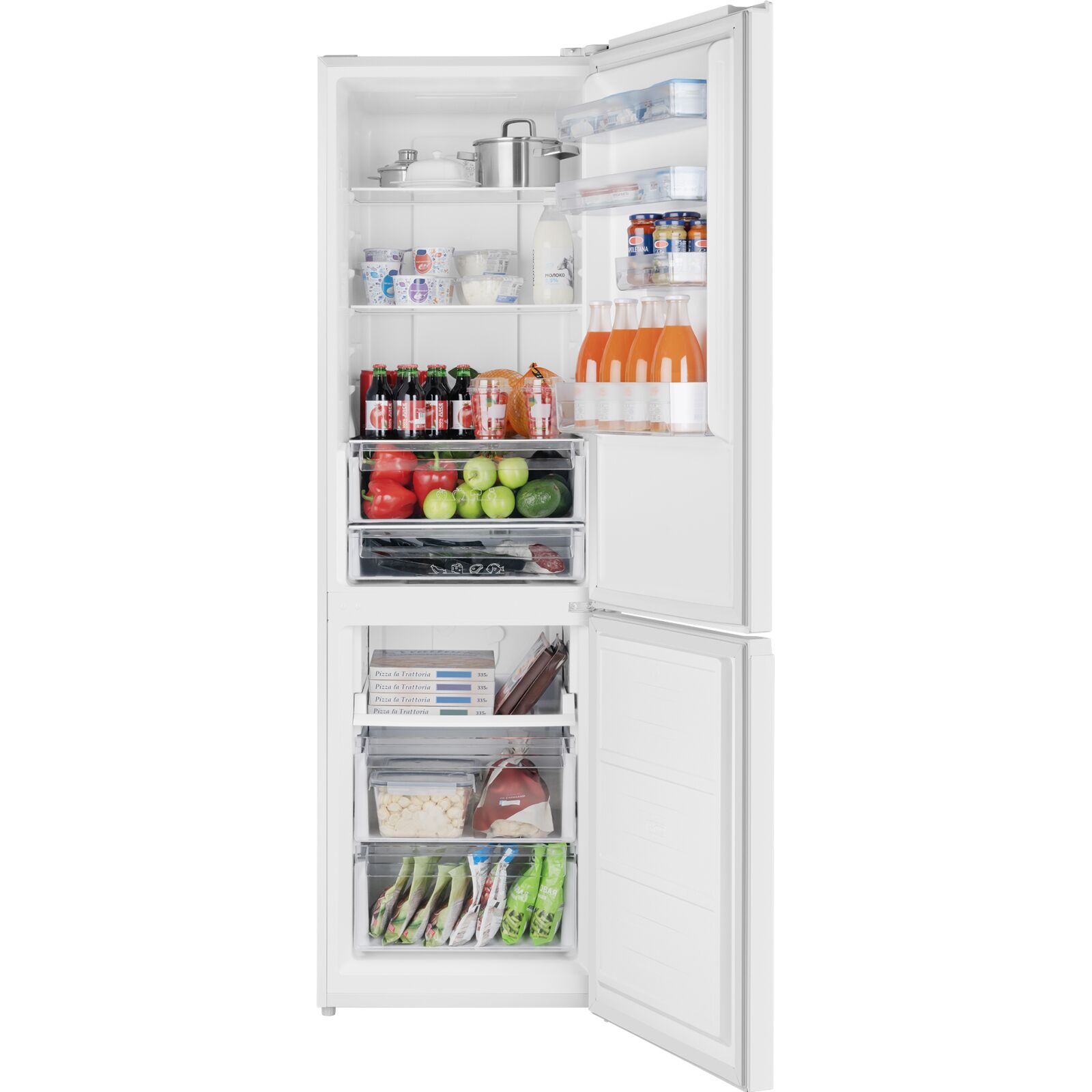 Технические характеристики: Размораживание: Full No Frost (система NoFrost и в холодильной, и в морозильной камерах): Объем холодильной камеры, л: 245: Объем морозильной камеры, л: 97: Инверторный компрессор: есть: Суперзаморозка: Есть: Высота, мм: 1950: Ширина, мм: 600: Глубина, мм: 685: Мощность замораживания, кг/сутки: 15: Цвет: белый: Дизайн отделки фасада: металл: Вес нетто, кг: 67: Зона свежести: есть: Климатический класс: SN-T: Общий объем, л: 382: Освещение: LED: Полезный объем, л: 342: Тип: Холодильник с морозильником: Управление: Электронное: Уровень шума, дБ: 40: Хладагент: R600a: Энергопотребление: A++: Страна производства: Китай;;;