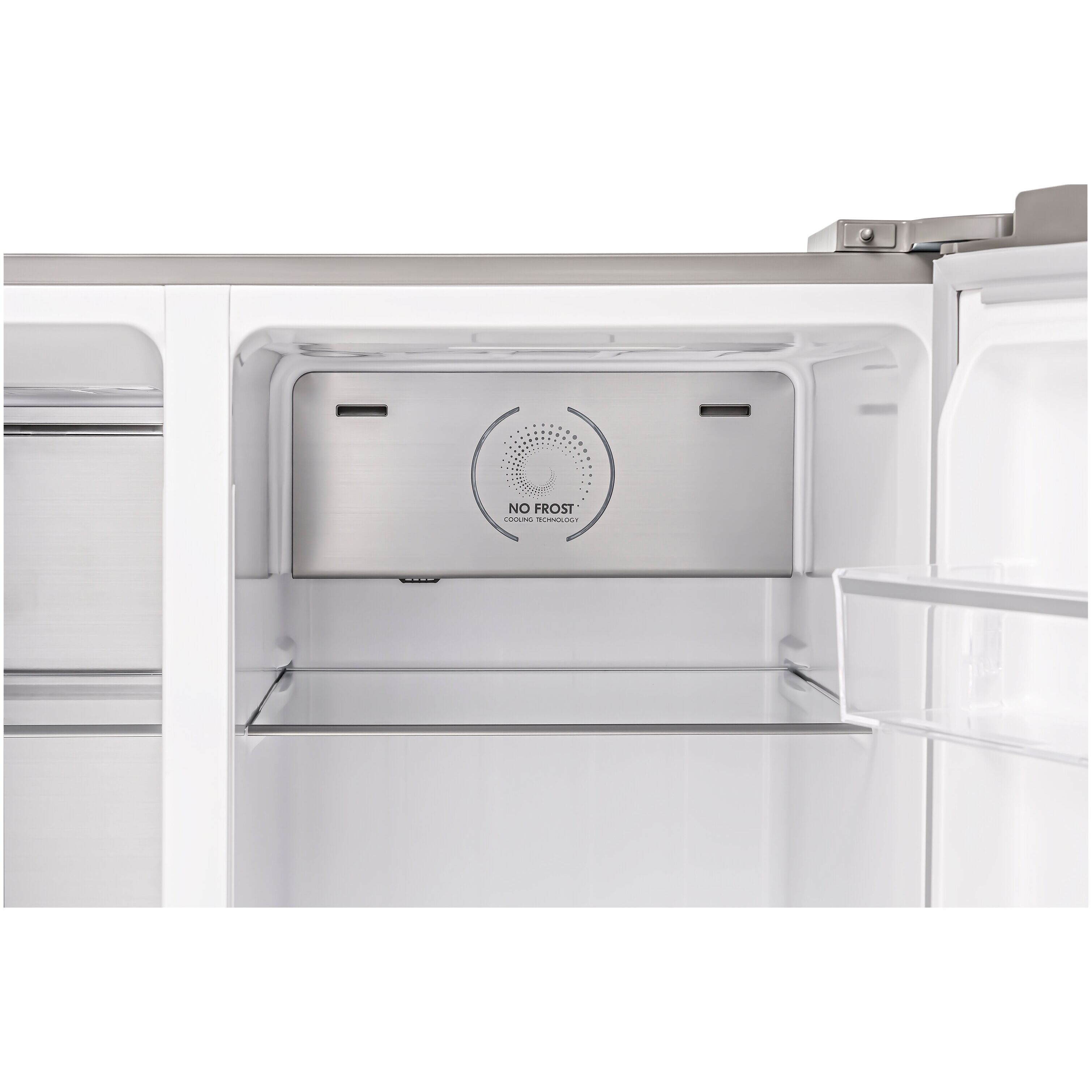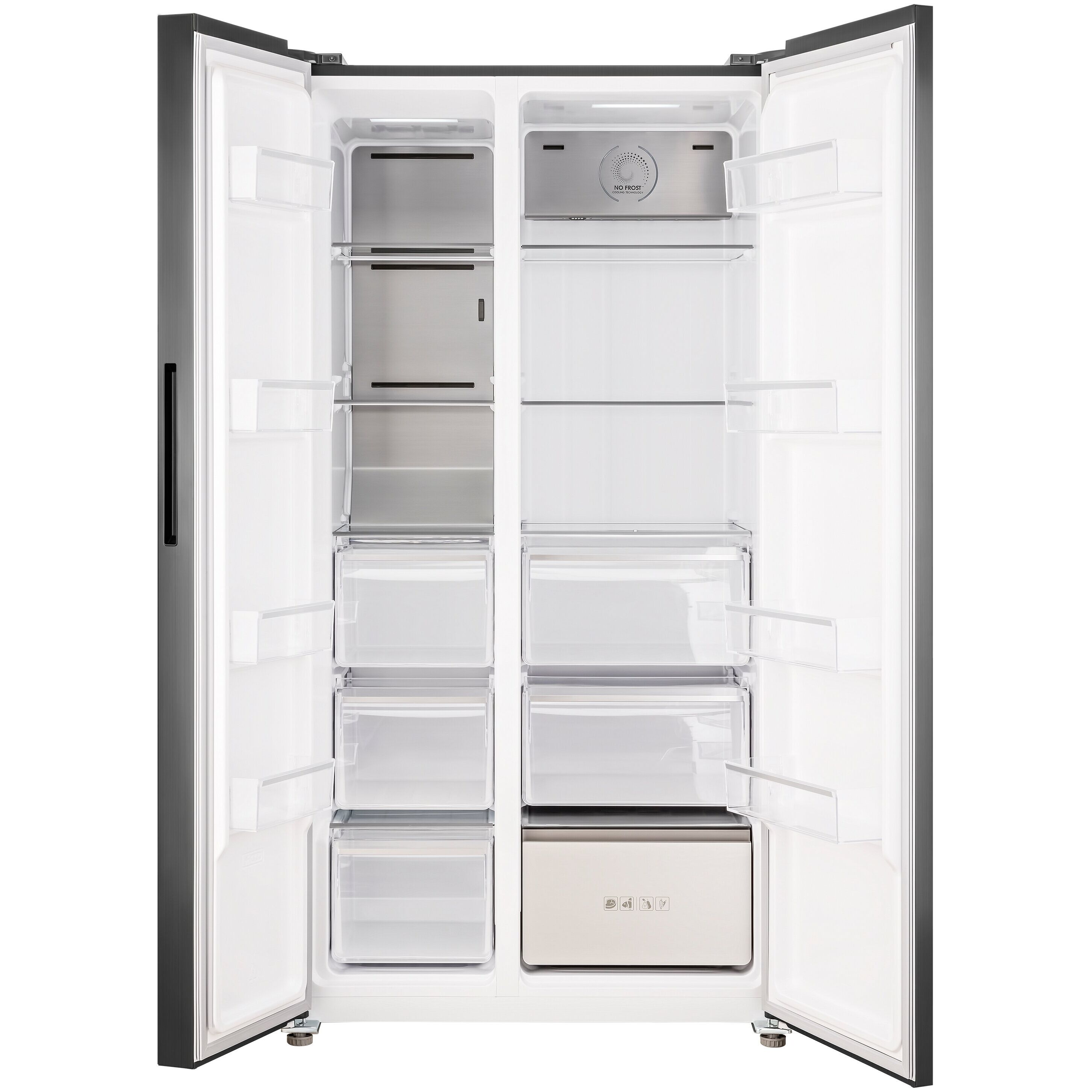 Общие Характеристики: ; Линейка; PREMIUM; Морозильная камера; Side by Side (сбоку); Тип управления; электронное; Размораживание морозильной камеры; No Frost; Размораживание холодильной камеры; No Frost; Зона свежести; есть; Класс энергопотребления; A+; Тип компрессора; инверторный; Уровень шума; 39 дБ; Управление со смартфона; нет; Габариты и объем; Высота; 177 см; Ширина; 91 см; Глубина; 73 см; Общий объем; 595 л; Объем холодильной камеры; 370 л; Объем морозильной камеры; 225 л; Производитель ность и режимы; Мощность замораживания; 15 кг/сут; Режимы; «отпуск», суперзаморозка, суперохлаждение; Автономное сохранение холода; 10 ч; Оснащение; Количество камер; 2; Количество дверей; 2; Количество полок в холодильном отделении; 3; Количество ящиков в холодильном отделении; 3; Количество ящиков/полок в морозильном отделении; 6; Материал полок; стекло; Дополнительные функции; индикация температуры; Климатический класс; SN, T; Индикация открытой двери; световая и звуковая; Особенности конструкции; дисплей; Дополните
