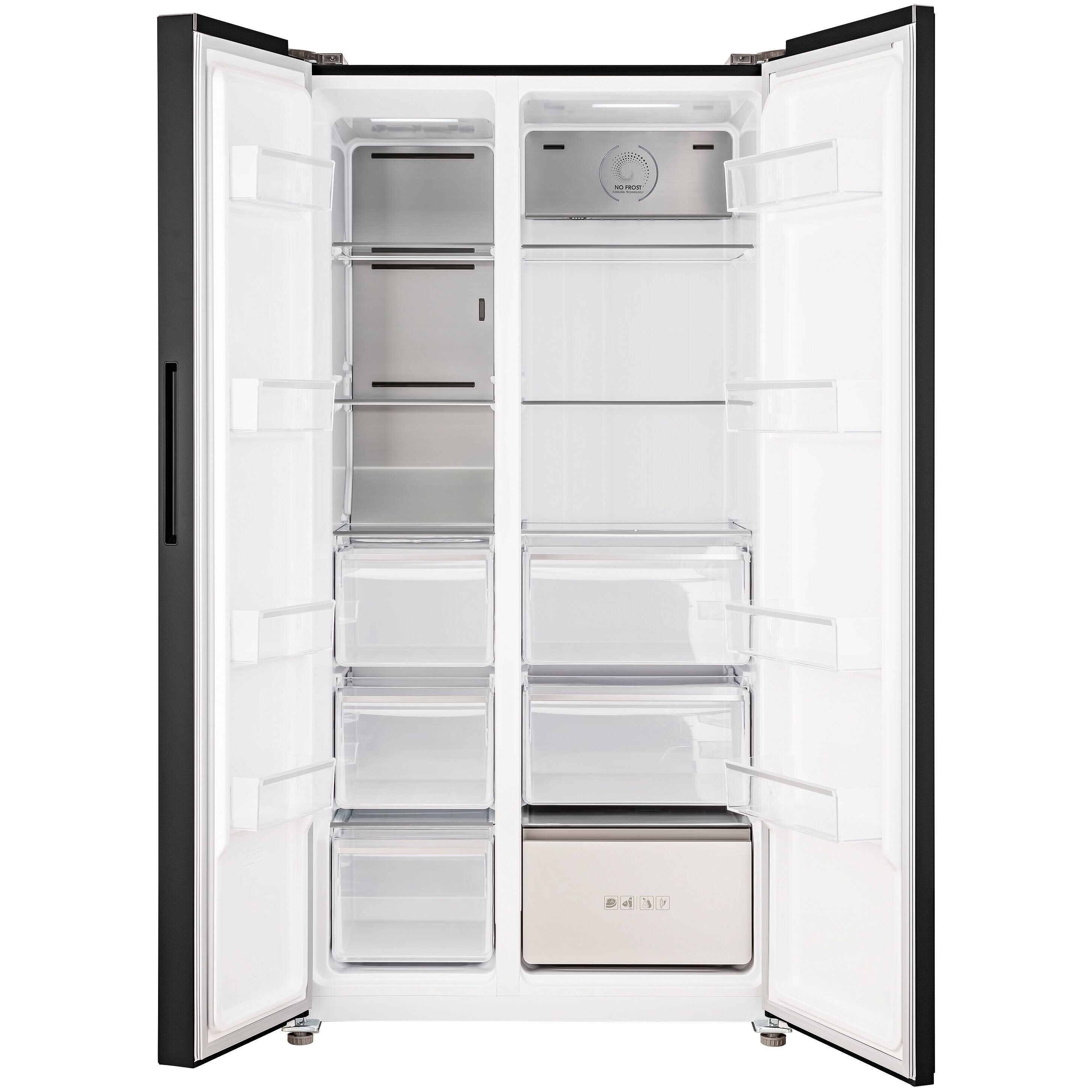 Морозильная камера; Side by Side (сбоку); Тип управления; электронное; Размораживание морозильной камеры; No Frost; Размораживание холодильной камеры; No Frost; Зона свежести; есть; Объем зоны свежести; 33 л; Класс энергопотребления; A+; Тип компрессора; инверторный; Уровень шума; 39 дБ; Управление со смартфона; нет; Габариты и объем; Высота; 177 см; Ширина; 91 см; Глубина; 73 см; Общий объем; 595 л; Объем холодильной камеры; 370 л; Объем морозильной камеры; 225 л; Производитель ность и режимы; Мощность замораживания; 15 кг/сут; Режимы; «отпуск», суперзаморозка, суперохлаждение; Автономное сохранение холода; 10 ч; Оснащение; Количество камер; 2; Количество дверей; 2; Количество полок в холодильном отделении; 3; Количество ящиков в холодильном отделении; 3; Количество ящиков/полок в морозильном отделении; 6; Материал полок; стекло; Дополнительные функции; индикация температуры; Климатический класс; SN, T; Индикация открытой двери; световая и звуковая; Особенности конструкции; дисплей; Дополнительно; Вес; 90 к
