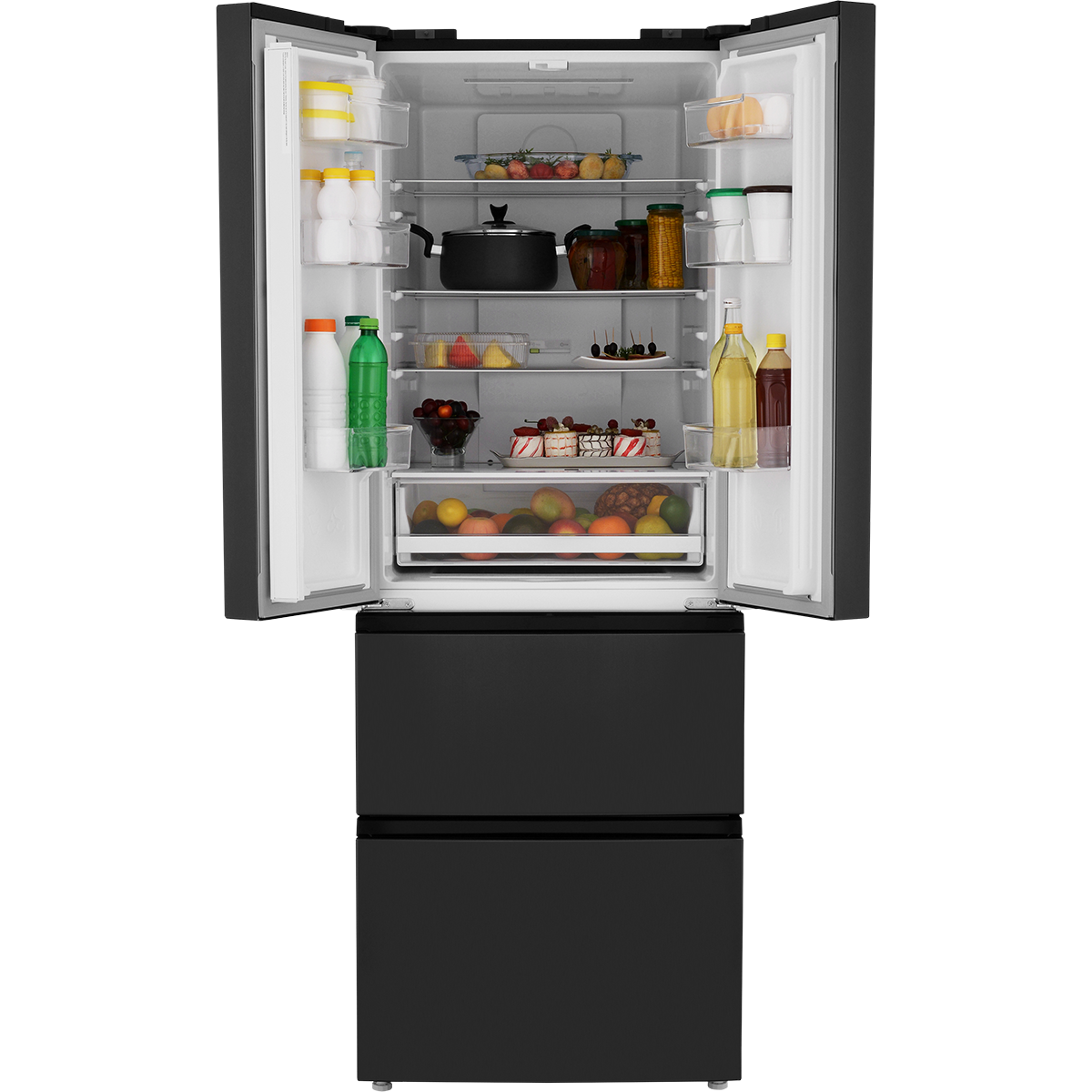 ТЕХНИЧЕСКИЕ ХАРАКТЕРИСТИКИ : Тип : French Door : Количество полок в холодильной камере : 4 : Цвет : Чёрная сталь (Black Inox) : Подставка для яиц : Да : Разморозка холодильной камеры : No Frost : Форма для льда : Да : Разморозка морозильной камеры : No Frost : Защита от детей : Да : Материал фасада : Металл : Индикация открытой двери : Да : Количество камер : 3 : Мощность замораживания (кг/сут) : 6 : Расположение морозильной камеры : Нижнее : Класс энергопотребления : A++ : LED-дисплей : Да : Автономное сохранение холода (ч) : 17 : Тип управления : Сенсорное : Годовое энергопотребление (кВт·ч в год) : 256 : Количество компрессоров : 1 : Климатический класс : SN/N/ST/T : Тип компрессора : Инверторный : Хладагент : R600а (изобутан) : Общий объём / Полезный объём Холодильника (л) : 366/337 : Уровень шума (дБ) : 42 : Общий объём / Полезный объём Холодильной камеры (л) : 235/224 : Высота (см) : 180,2 : Общий объём / Полезный объём Морозильной камеры (л) : 131/113 : Ширина (см) : 65,4 : Зона свежести : Да : Глубина