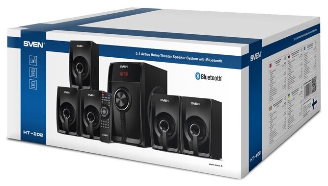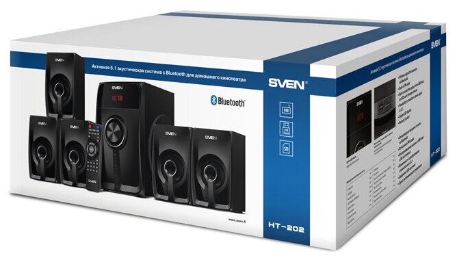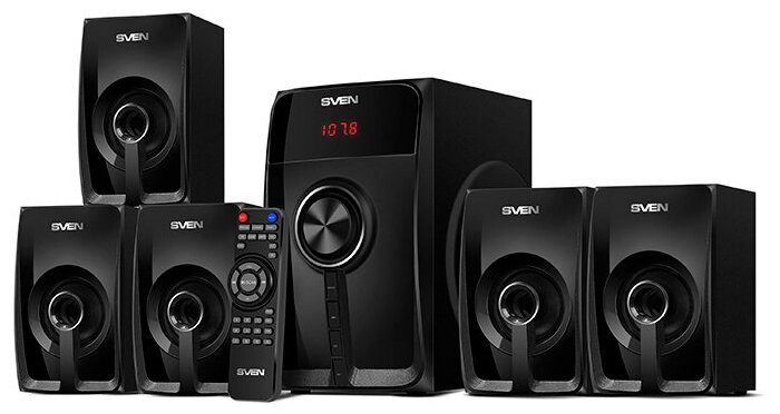 активная, стандарт 5.1, фронтальные колонки 16 Вт, тыловые колонки 16 Вт, центральный канал 16 Вт, сабвуфер 20 Вт, материал колонок: MDF, материал сабвуфера: MDF, 40-22000 Гц, пульт ДУ