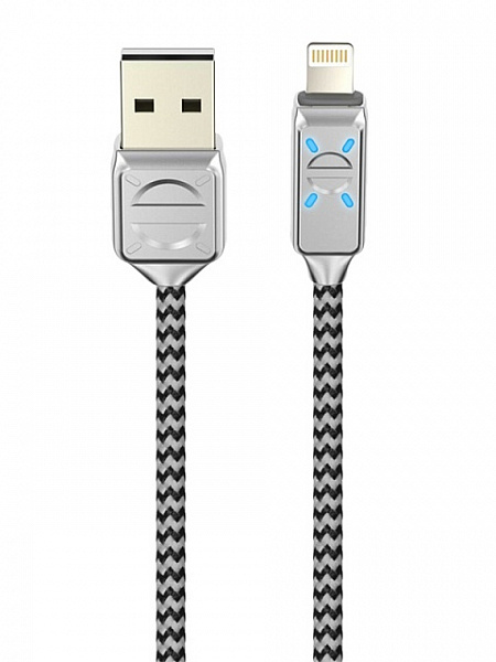 Кабель OLMIO 038659 USB 2.0 - lightning LED, 1.2м, 2.1A Серый