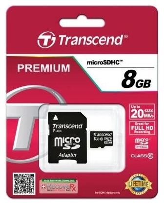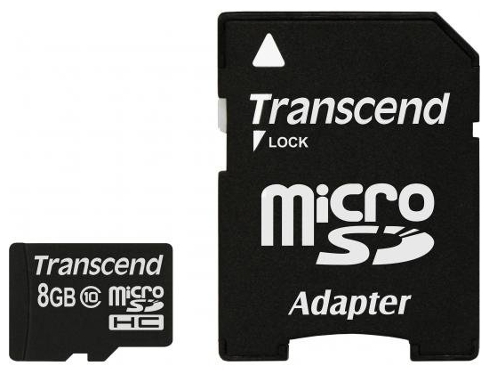 Карта памяти Transcend micro SDHC 8 Gb+адаптер Class 10