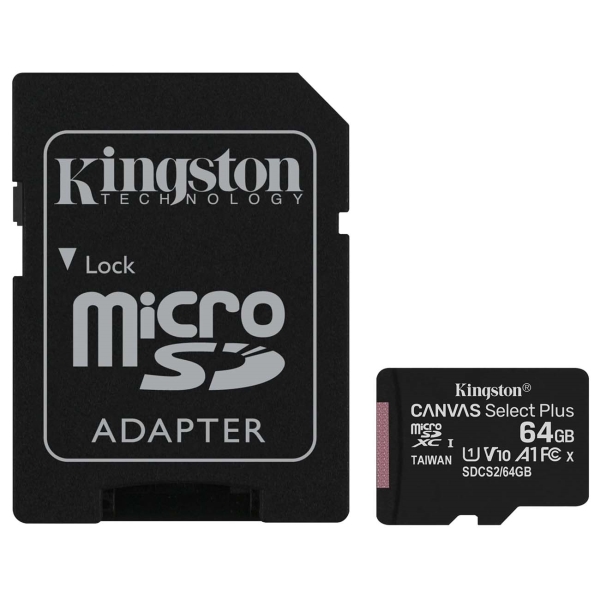 карта памяти microSDXC, Class 10; объем 64 ГБ; скорость чтения 100 МБ/с; в комплекте адаптер на SD