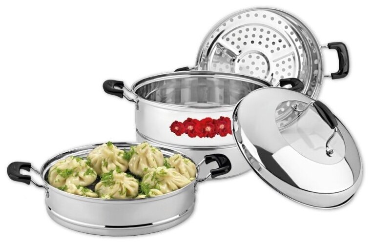 материал: сталь; подходит для индукционных плит: да; диаметр верха: 28 см; особенности: ненагревающаяся ручка, крышка в комплекте; толщина стенок: 0.5 мм