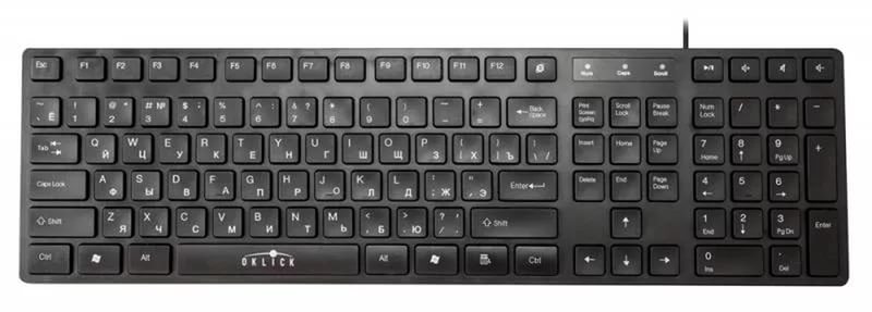 проводная; мембранная; интерфейс подключения: USB; количество клавиш 104; влагозащищенная; размеры (ШxВxГ): 440x23x123 мм