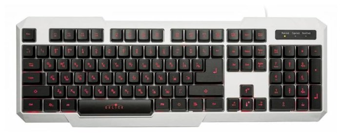 проводная с подсветкой; интерфейс подключения: USB; количество клавиш 104; размеры (ШxВxГ): 450x25x160 мм