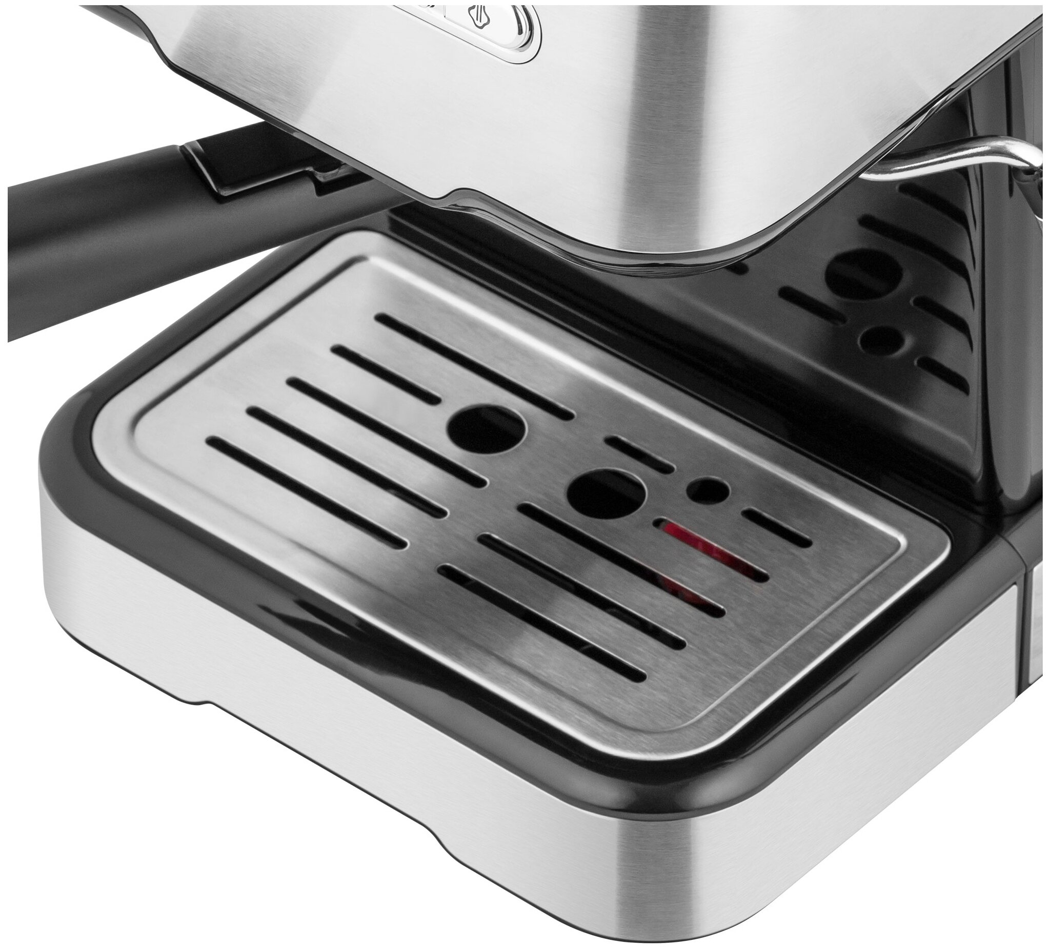 тип устройства: кофеварка, тип: рожковая, тип используемого кофе: молотый, приготовление капучино: ручное, тип напитка: капучино, эспрессо, давление помпы: 15 бар, одновременное приготовление двух чашек, объем: 1.50 л, дополнительные функции: подогрев чашек, особенности конструкции: съемный лоток для сбора капель