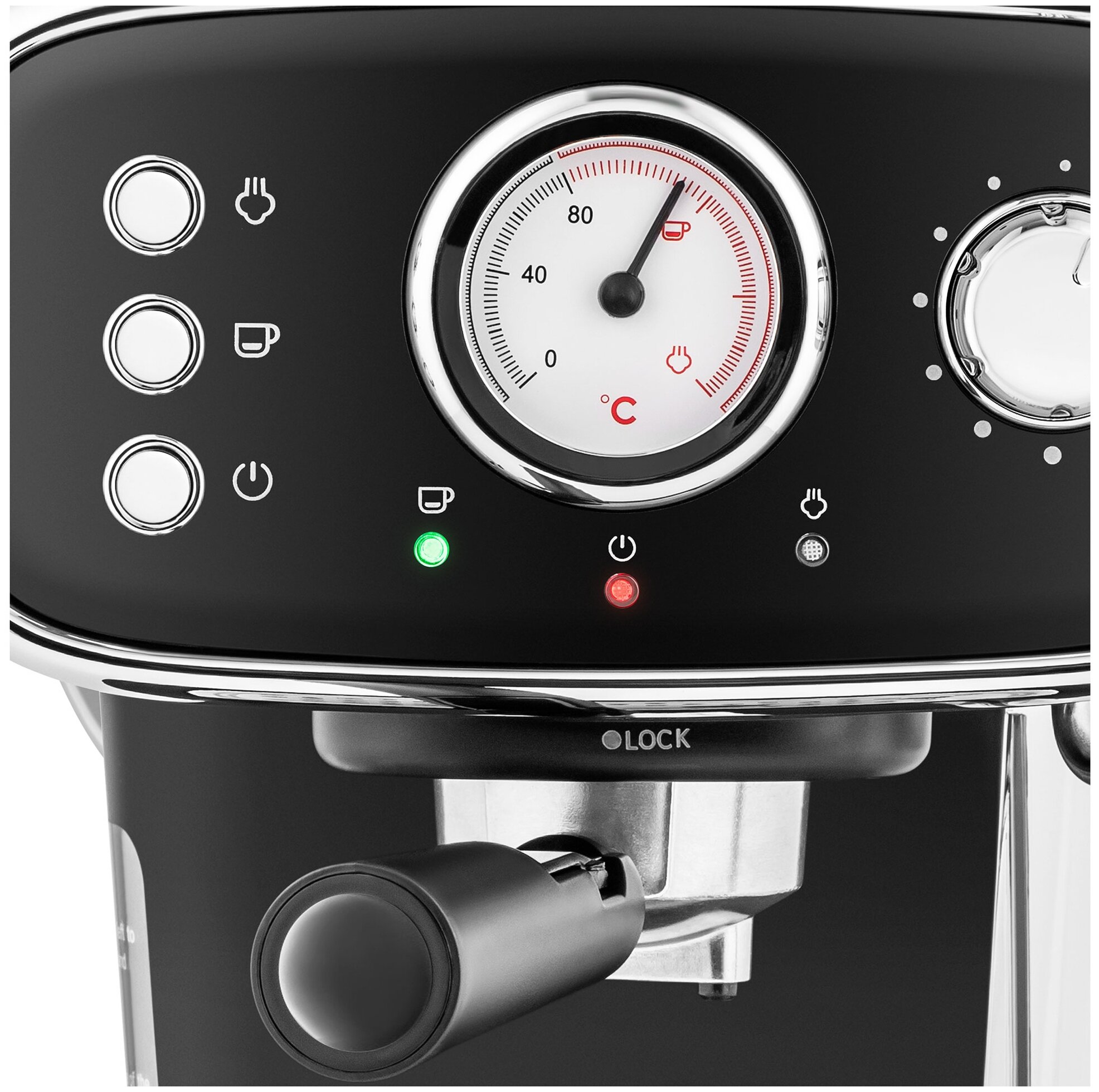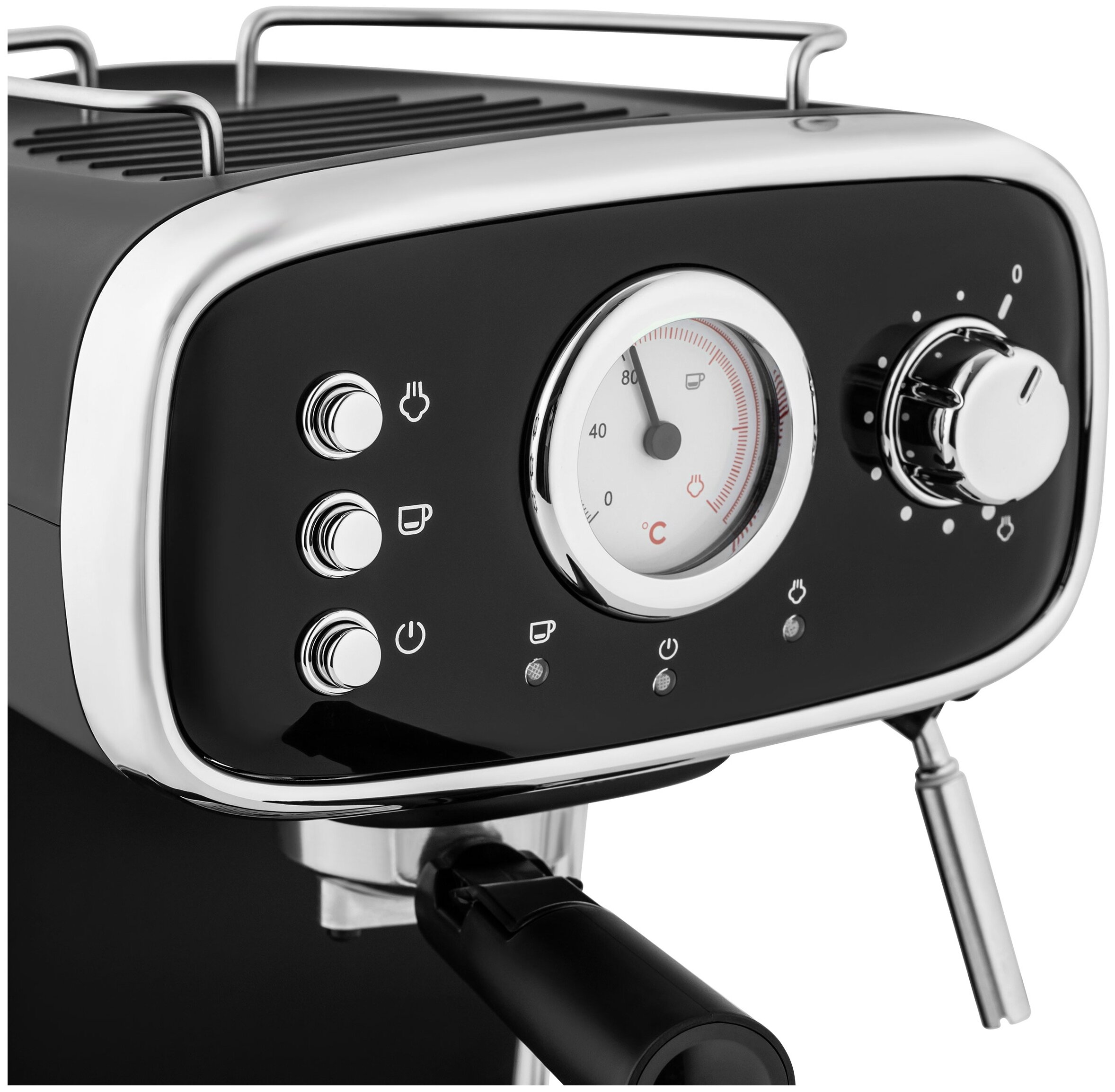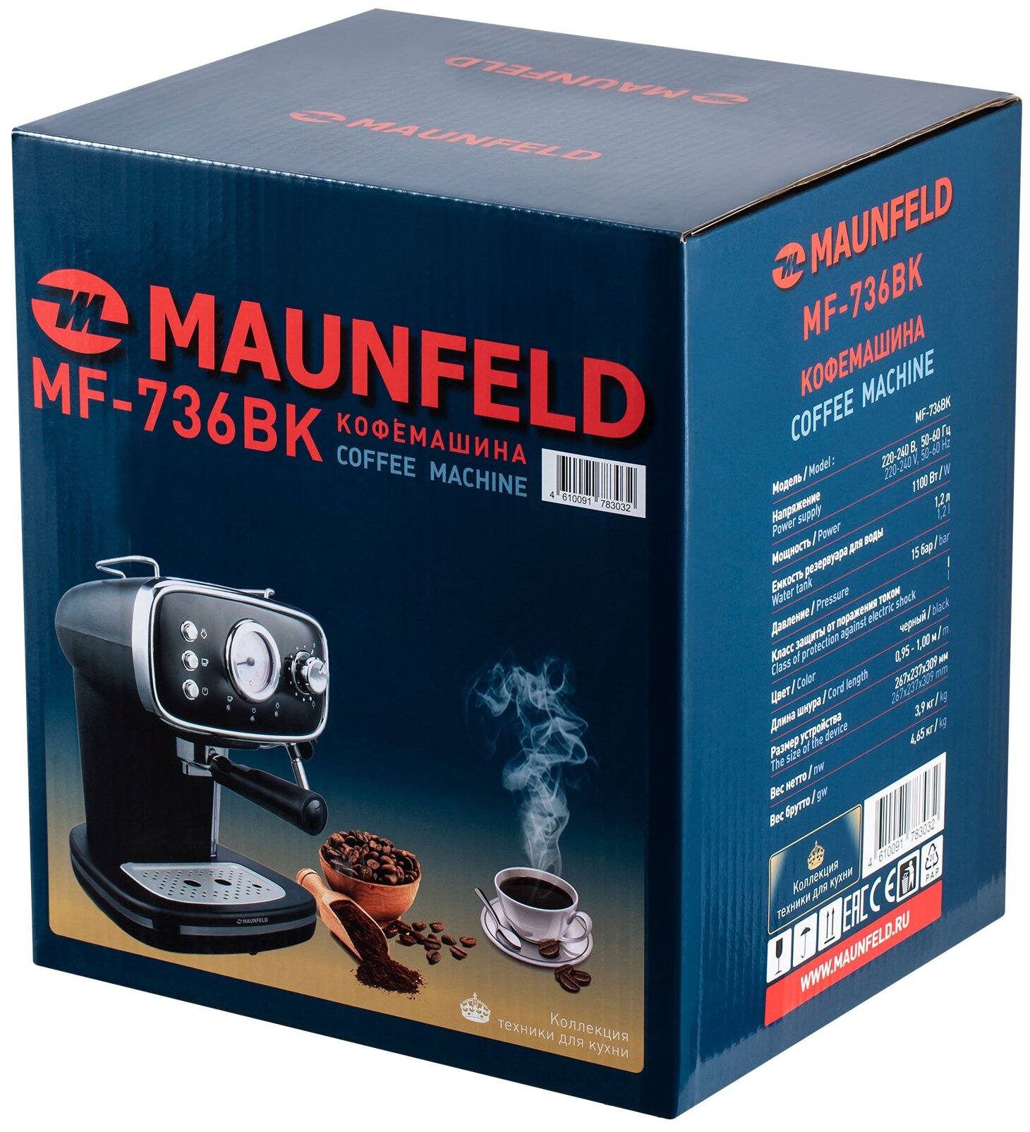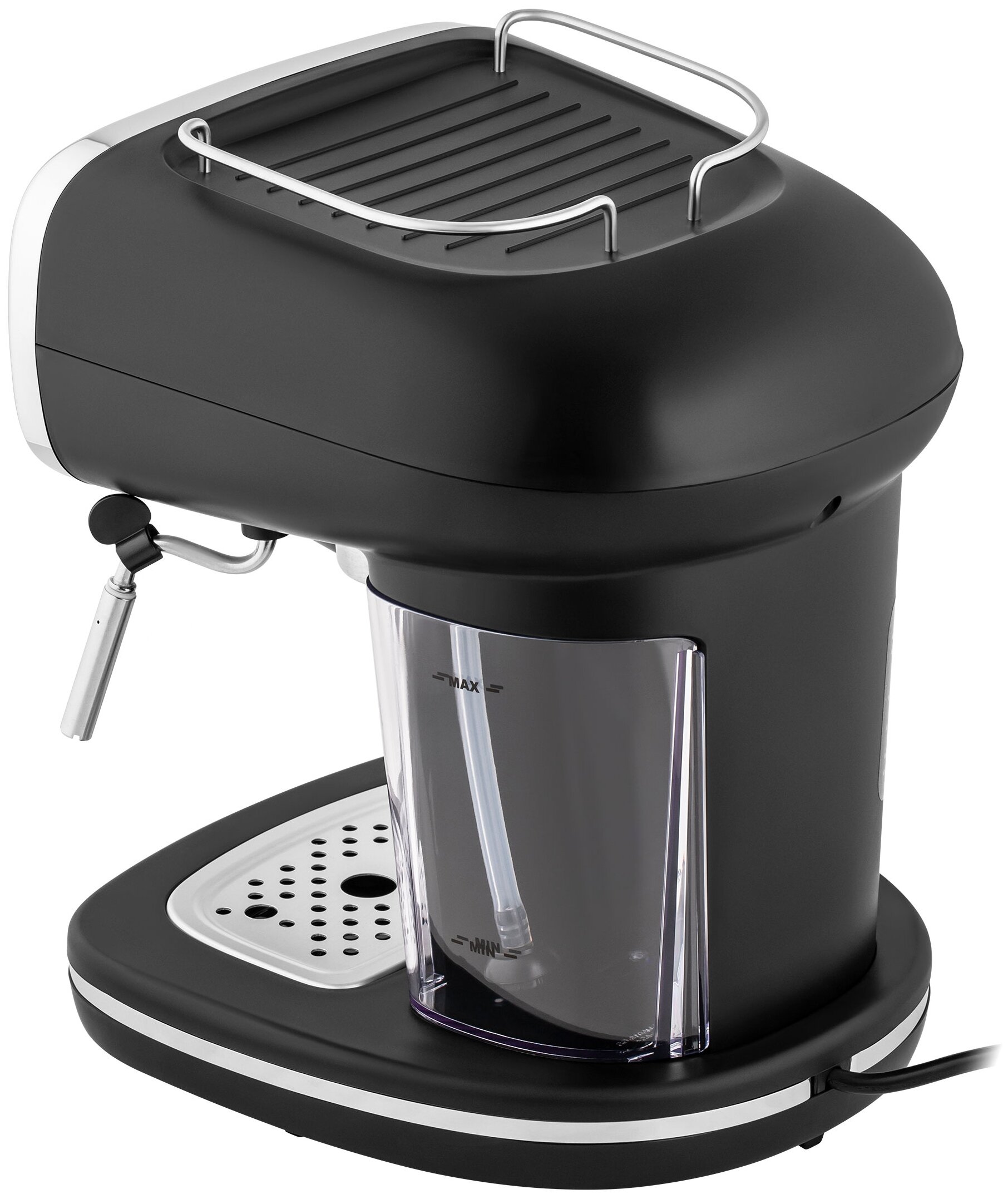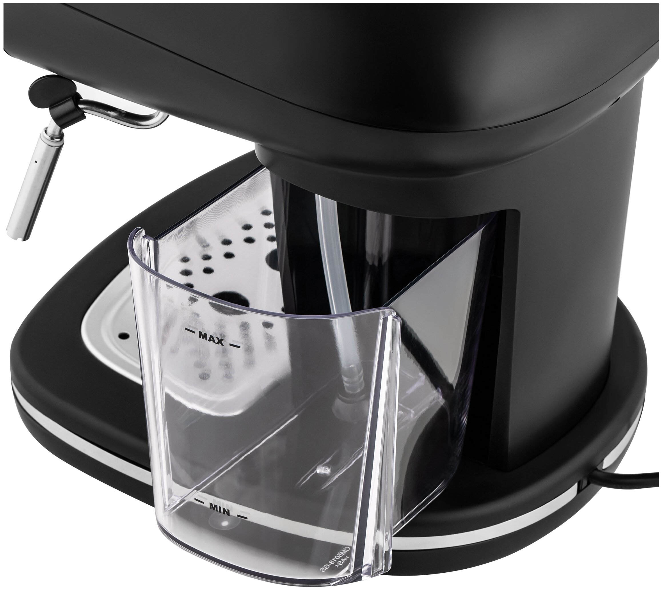 тип устройства: кофеварка, тип: рожковая, тип используемого кофе: молотый, приготовление капучино: ручное, тип напитка: капучино, эспрессо, давление помпы: 15 бар, одновременное приготовление двух чашек, объем: 1.20 л, особенности конструкции: съемный лоток для сбора капель